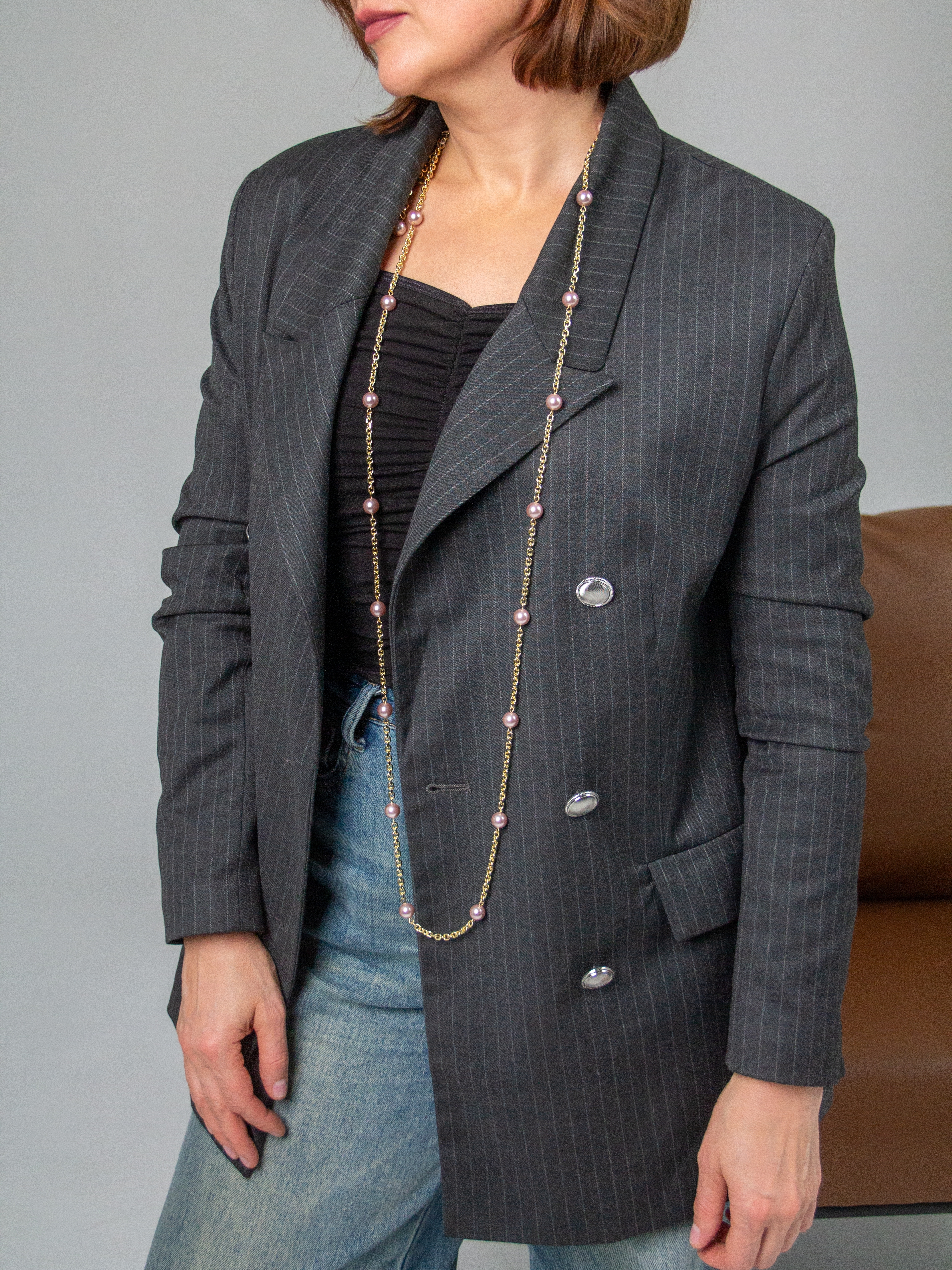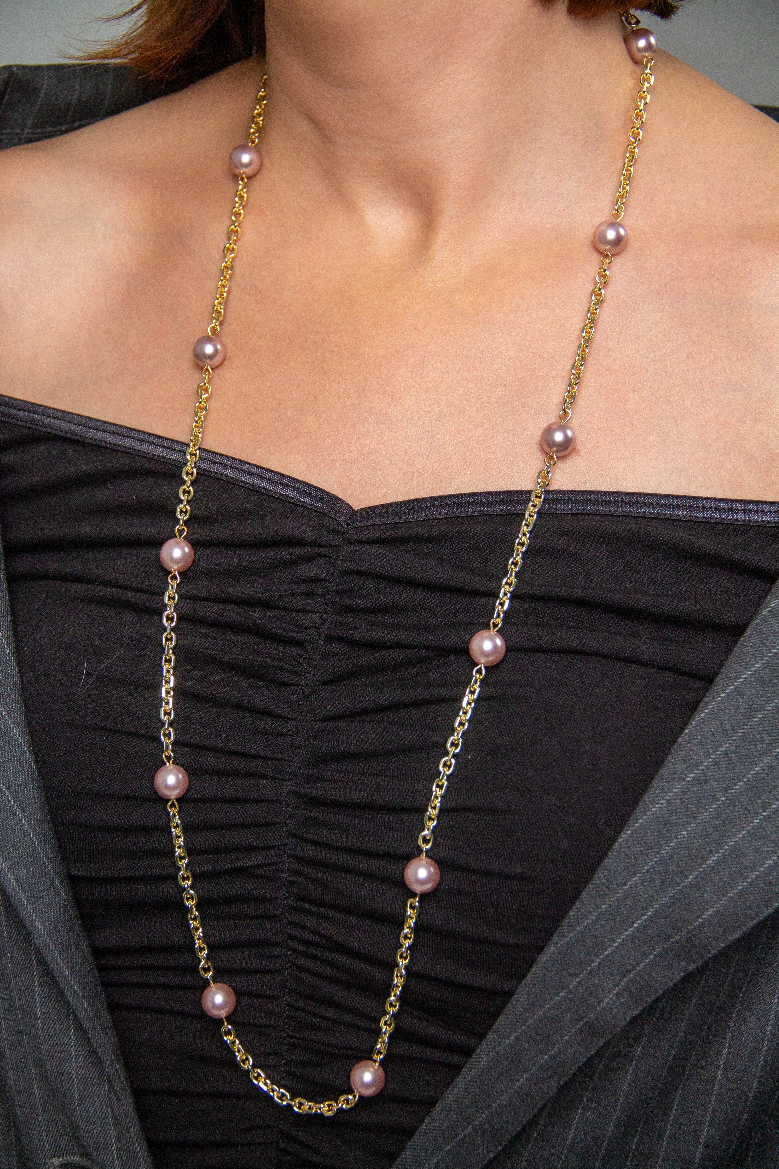 Колье "Бланш" 130 см из жемчуга розовый щербет на золотой цепочке