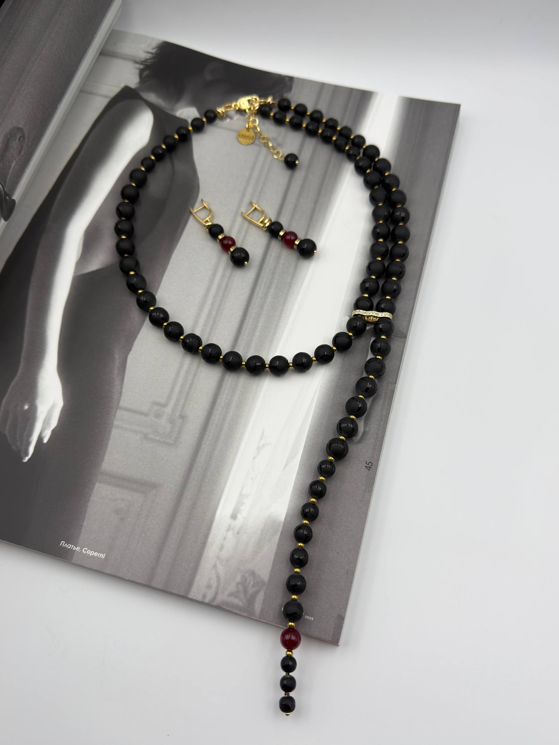 Колье "Эйва" с золотой застежкой. Шунгит, рубеллит, цирконы.
