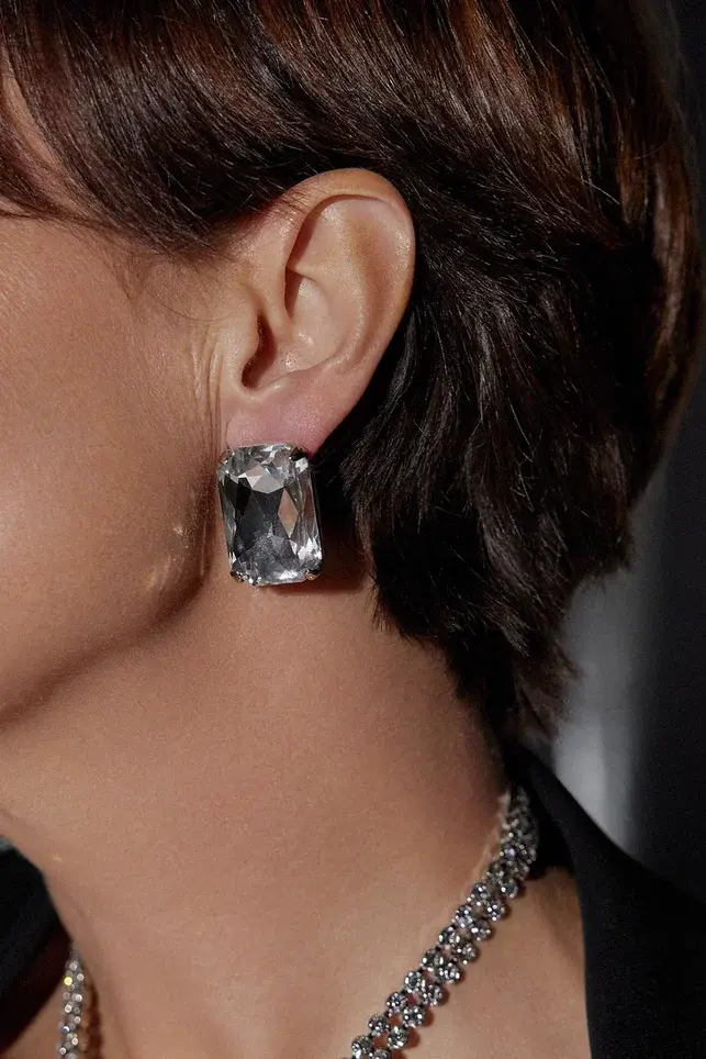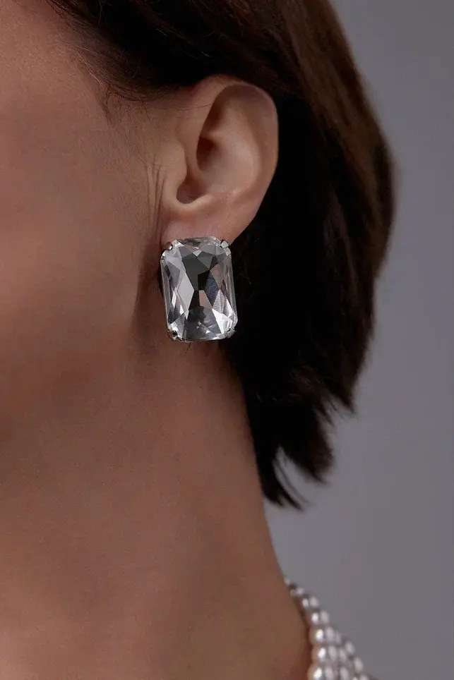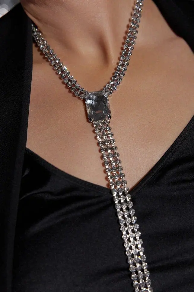 Колье галстук из кристаллов с прозрачным прямоугольным кристаллом по центру