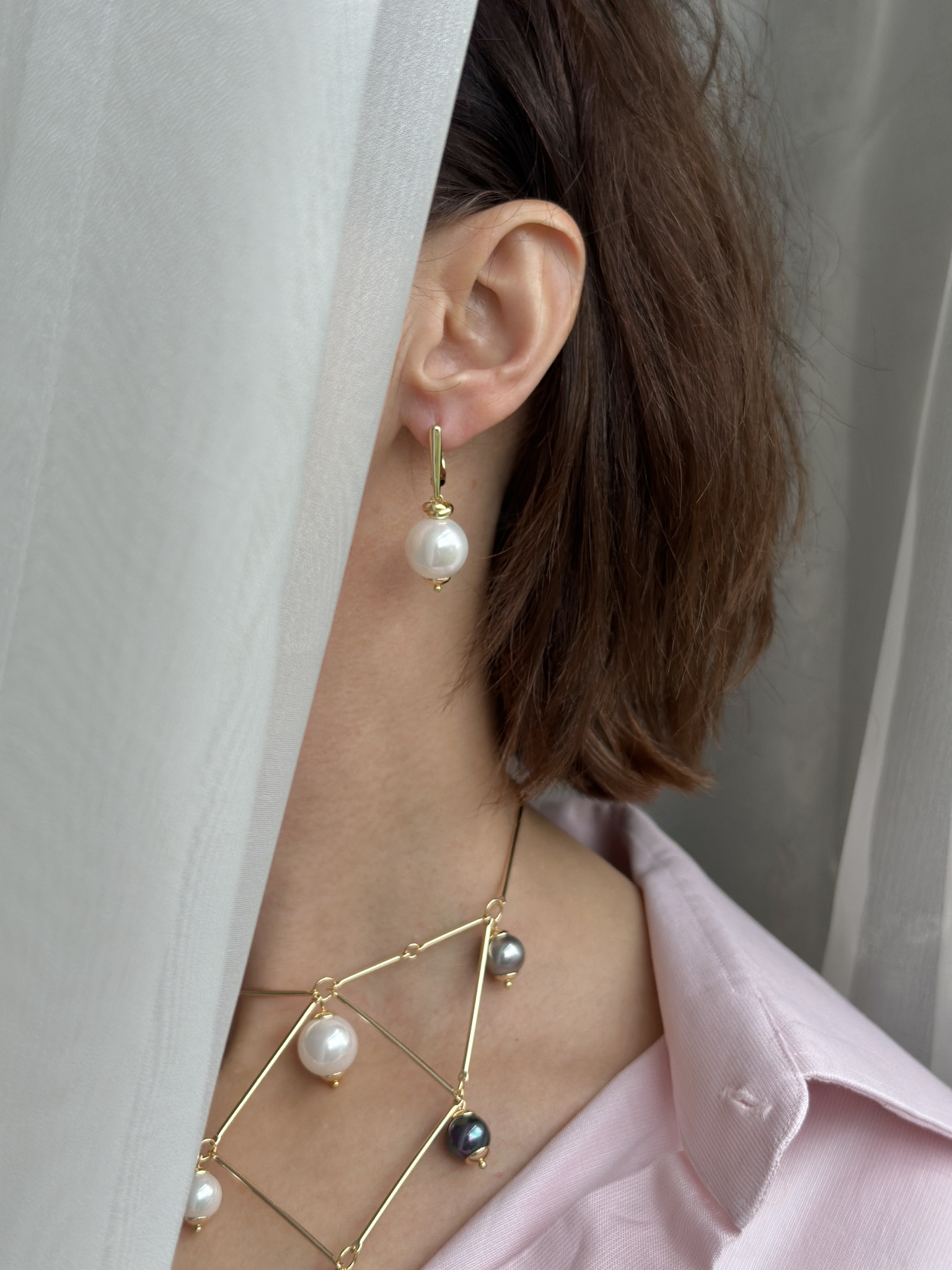 Колье-галстук "Версаль" золотая цепь с белым жемчугом Майорка. Регулировка длины. Жемчужины в диаметре - 1,5 см.