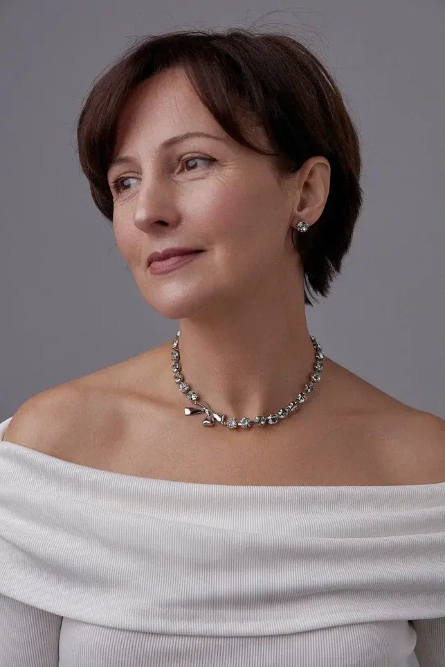 Колье из прозрачных кристаллов с бантом, оттенок серебро
