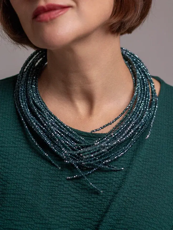 Колье "лапы", венецианское стекло бисерной огранки, цвет сине-зеленый