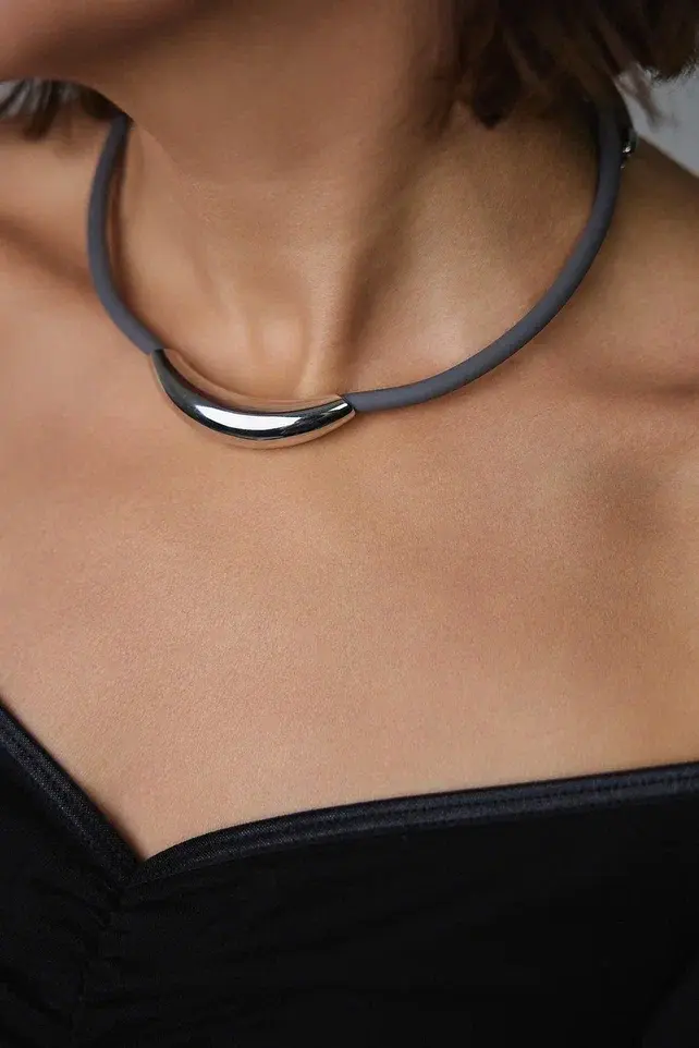 Колье "Моно" серый каучук с золотой вставкой. Без застежки.