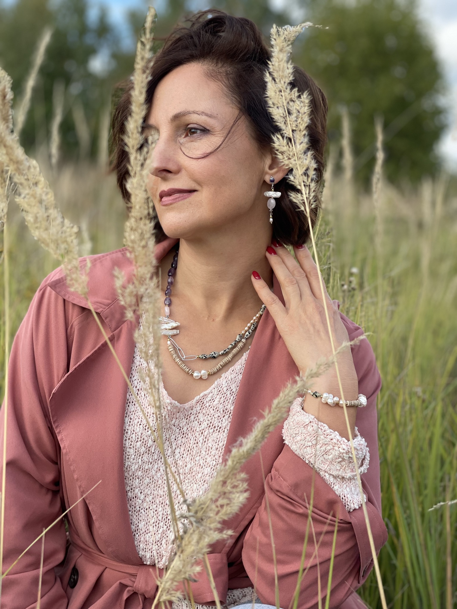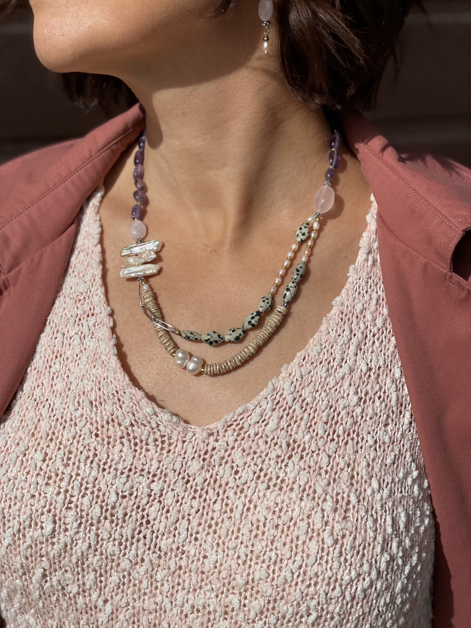Колье Nature Bijoux, Copenhague, с жемчугом, аметистом, яшмой, розовым кварцем и морской раковиной,