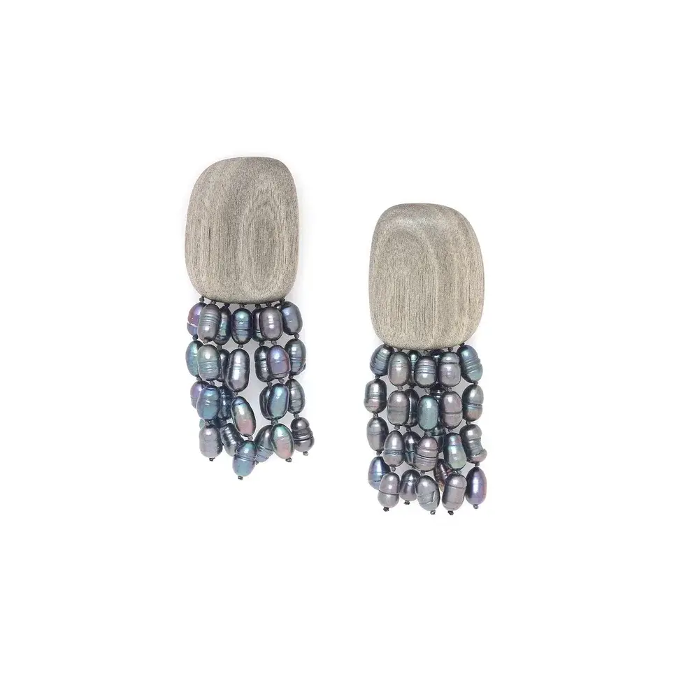 Колье с темным жемчугом и вставками из эбенового дерева. Длина - 41-45 см.