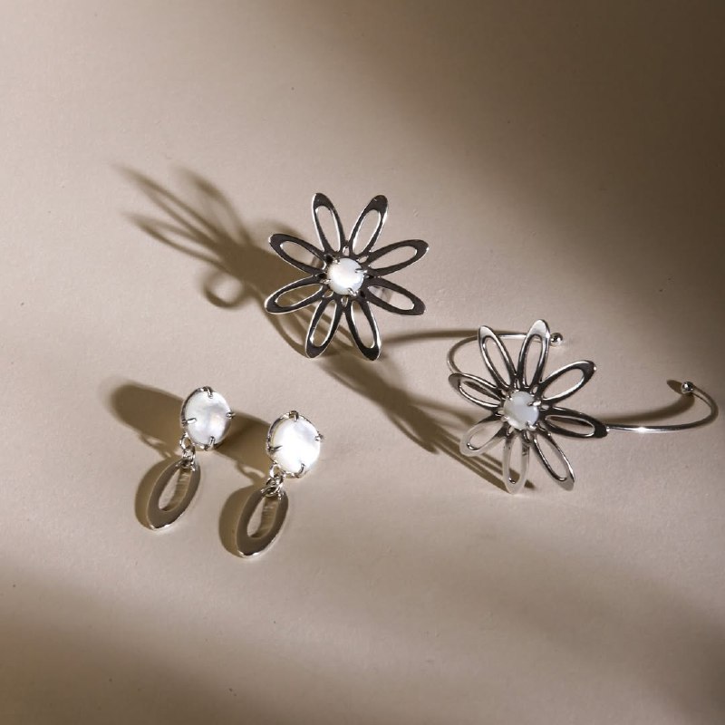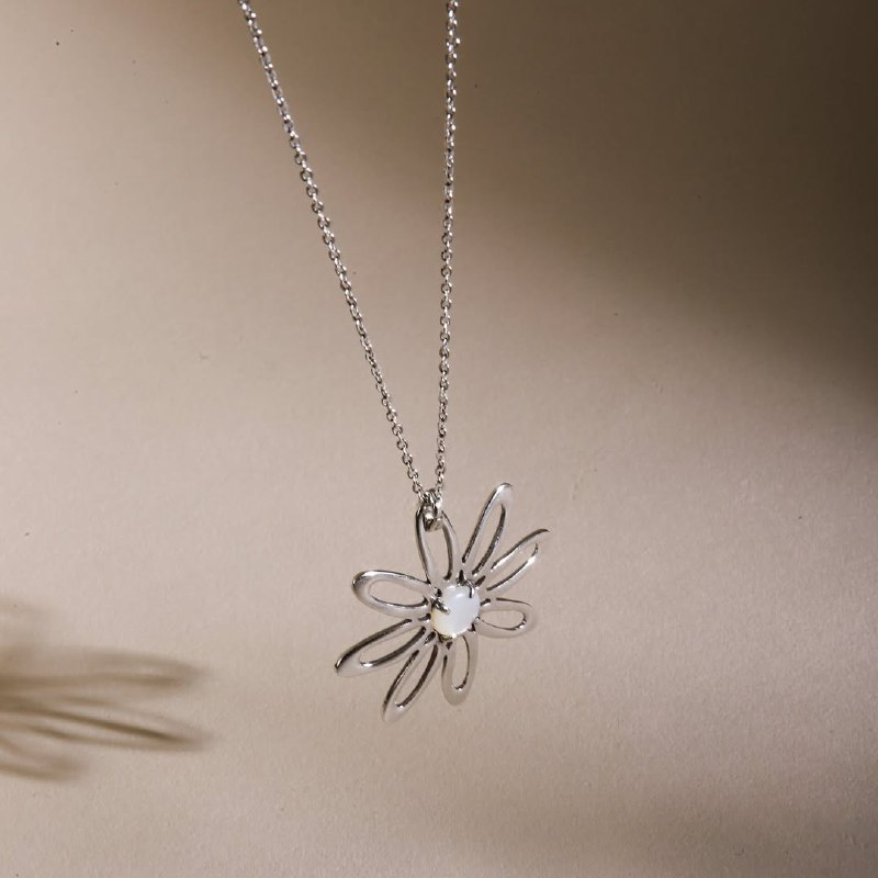 Колье ORI TAO, Bloom, цветок с перламутром, OT25.2-15-31947 (серебристый).