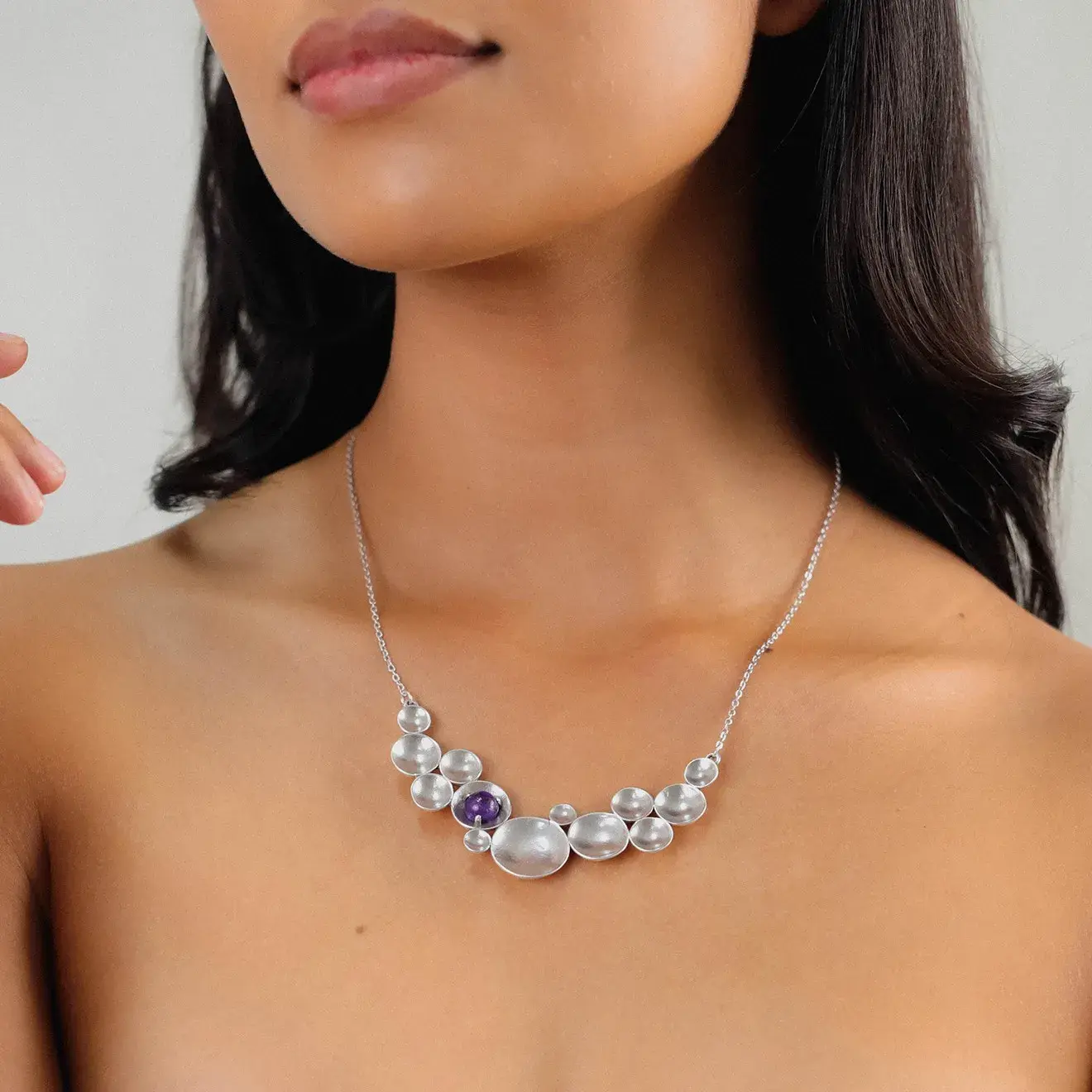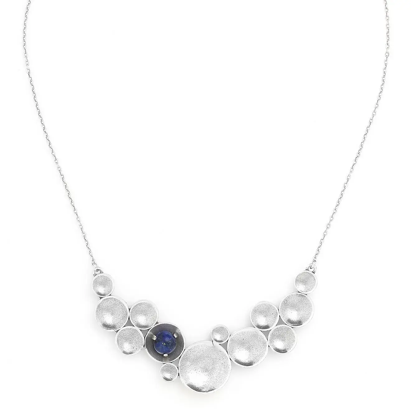 Колье выполнено из качественного бижутерного сплава с элегантным серебристым оттенком.