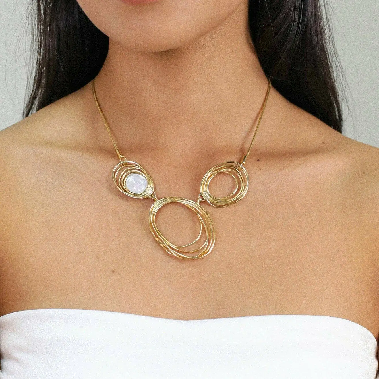 Длина изделия подобрана таким образом, чтобы колье идеально смотрелось как на открытом декольте, так и поверх одежды.