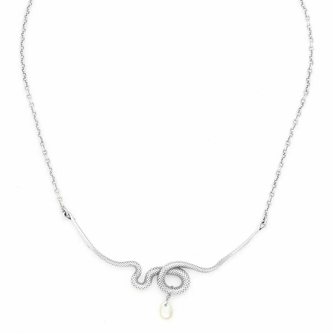 Перламутровая вставка добавляет колье элегантности и неповторимого блеска, гармонично сочетаясь с серебристым оттенком основы. Благодаря покрытию серебром толщиной 20 микрон, изделие устойчиво к потускнению и сохраняет первозданную красоту долгие годы. Регулируемая длина позволяет подобрать оптимальный размер под любую шею, делая это украшение универсальным элементом гардероба.