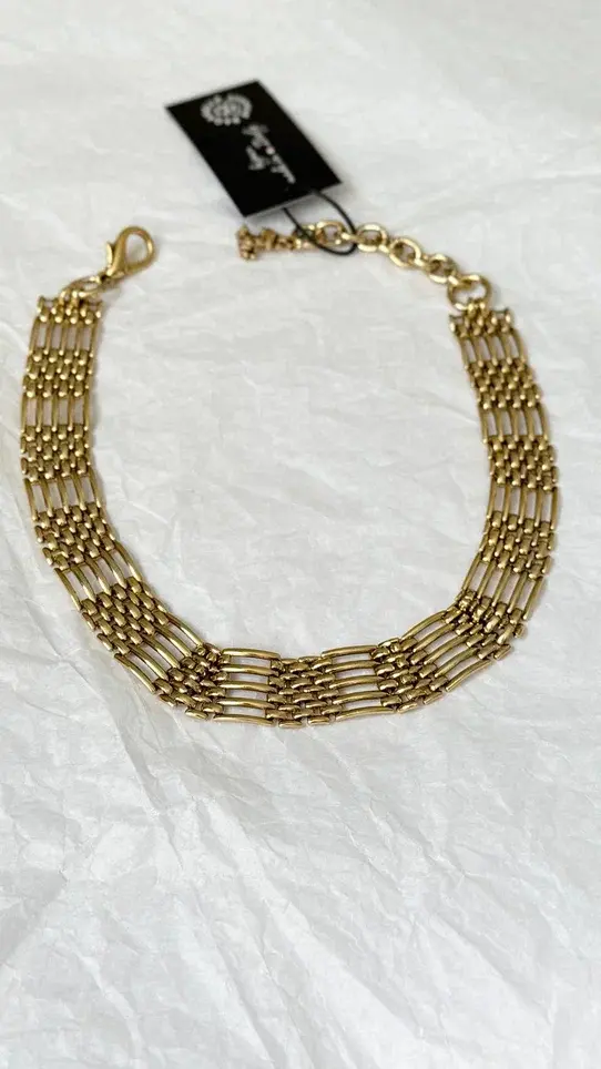 Колье - плоская цепь воздушного плетения. Ширина - 1,5 см. Длина - 34-39 см. Оттенок - золото антик.