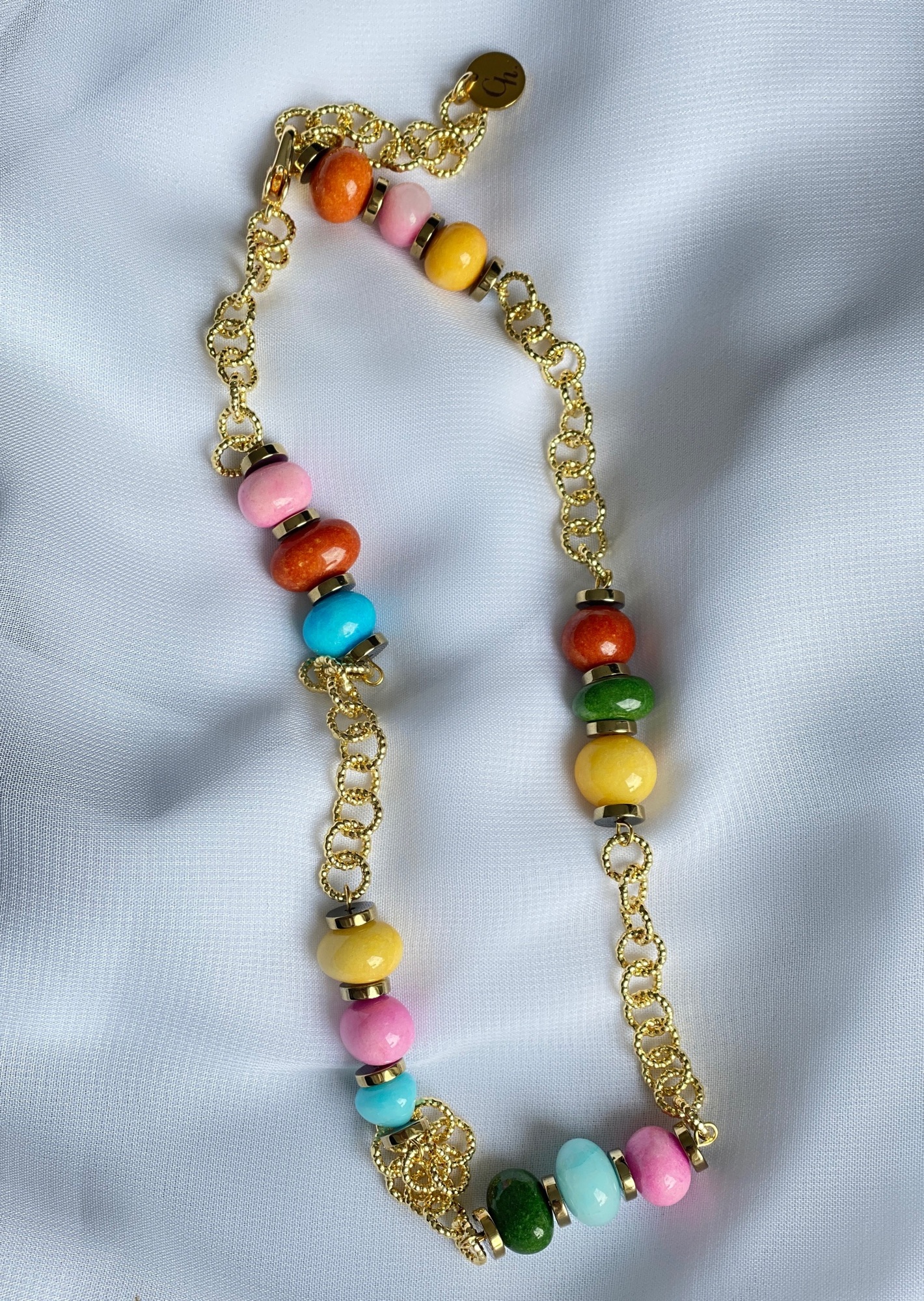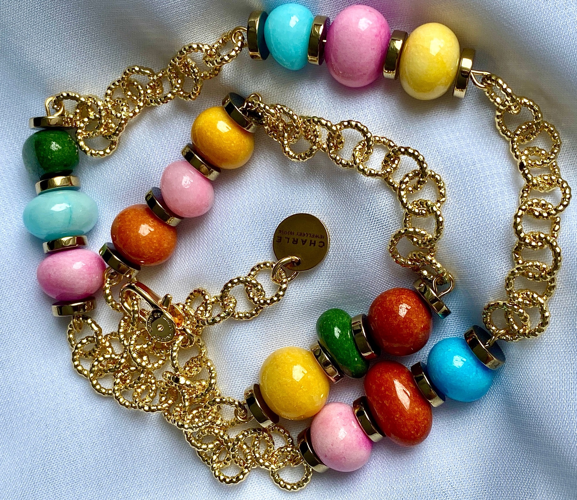 Колье "Рио" с тонированными агатами, оттенок золото. Длина регулируется - до 121 см.