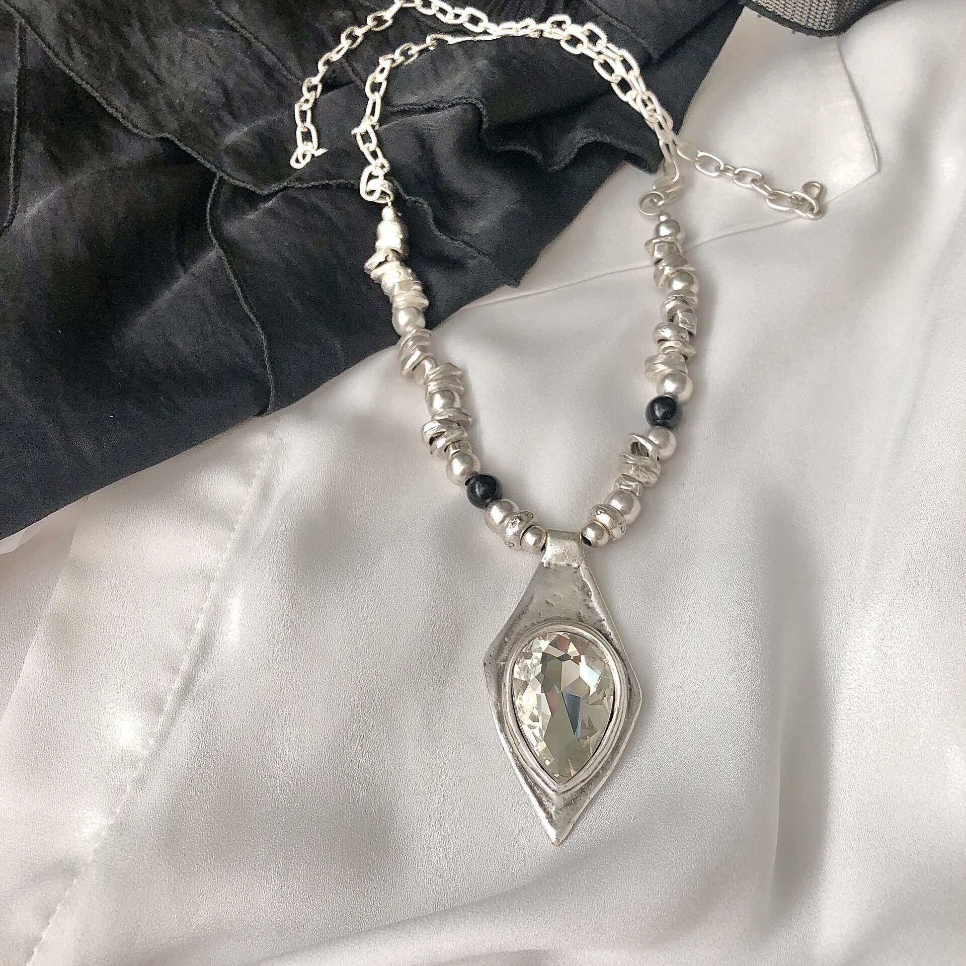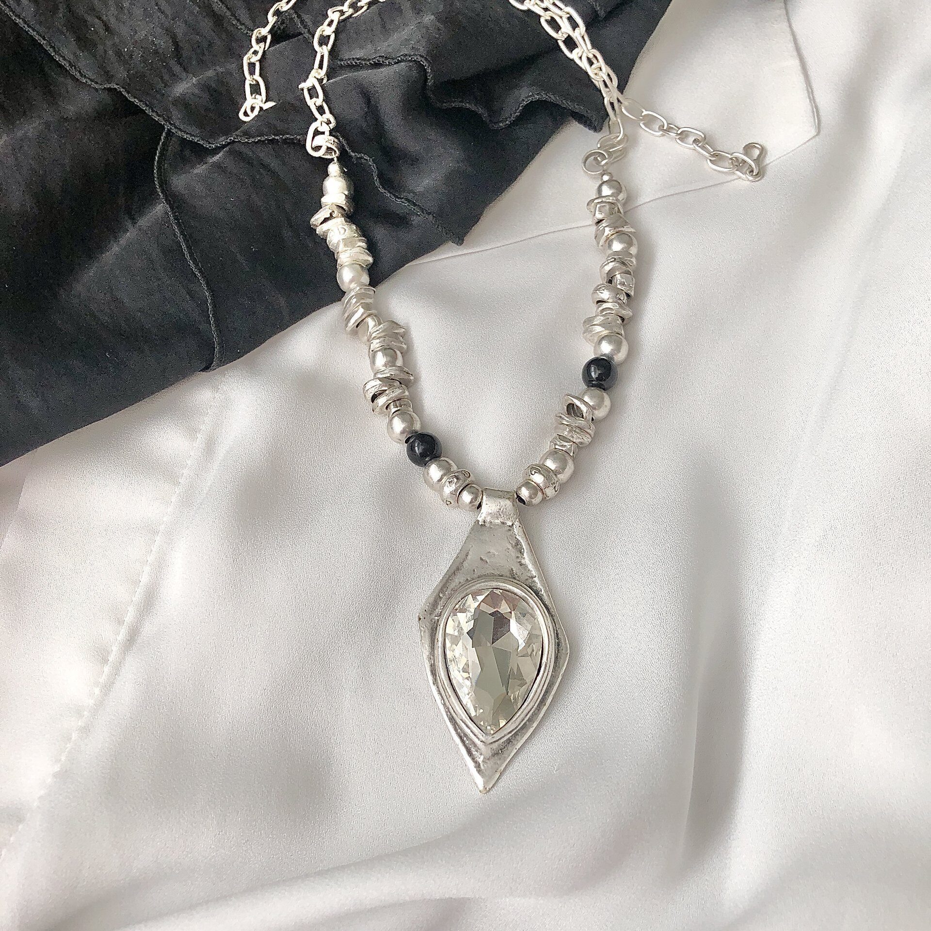 Колье с ромбом белый кристалл. Регулировка длины.
