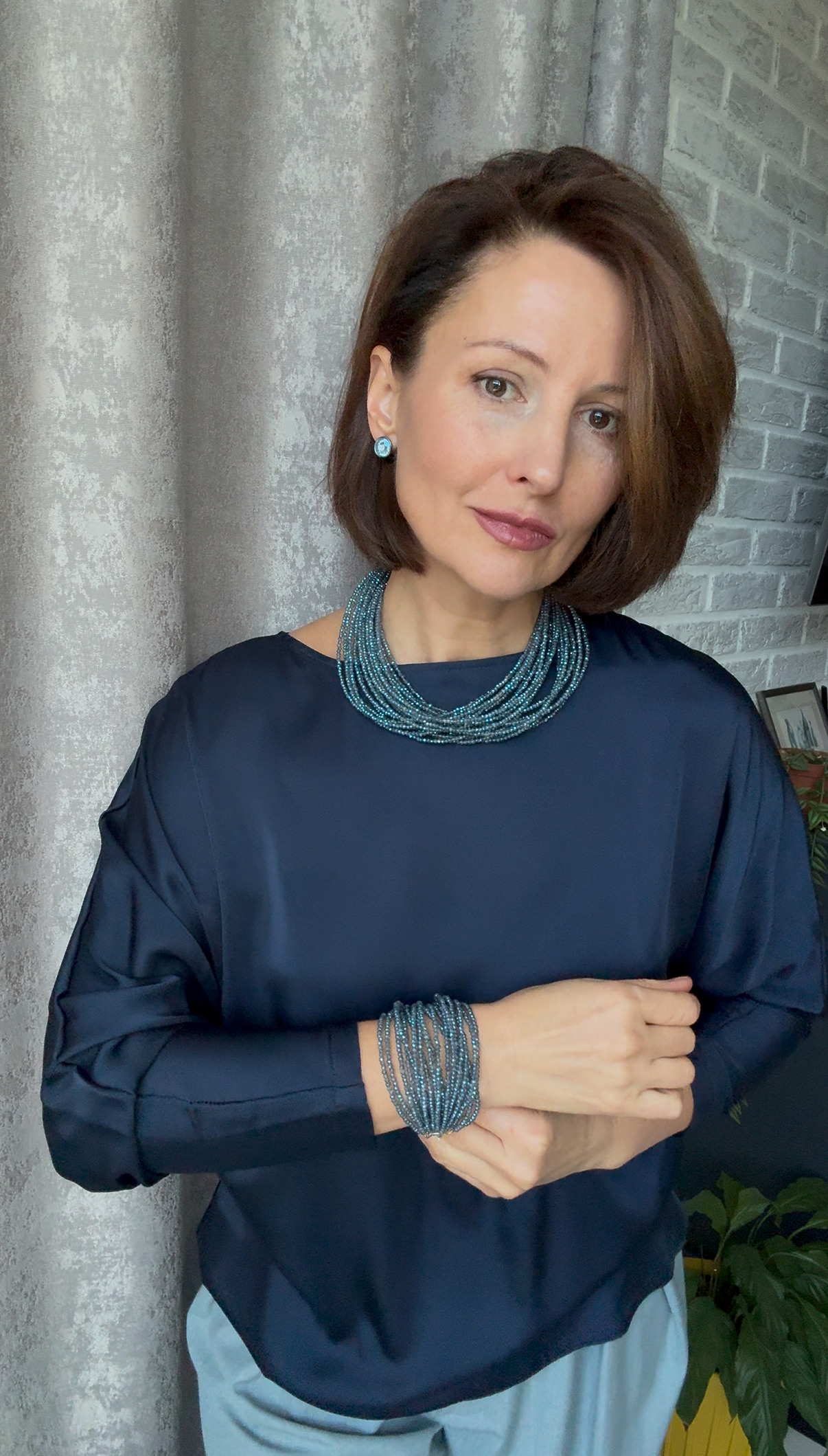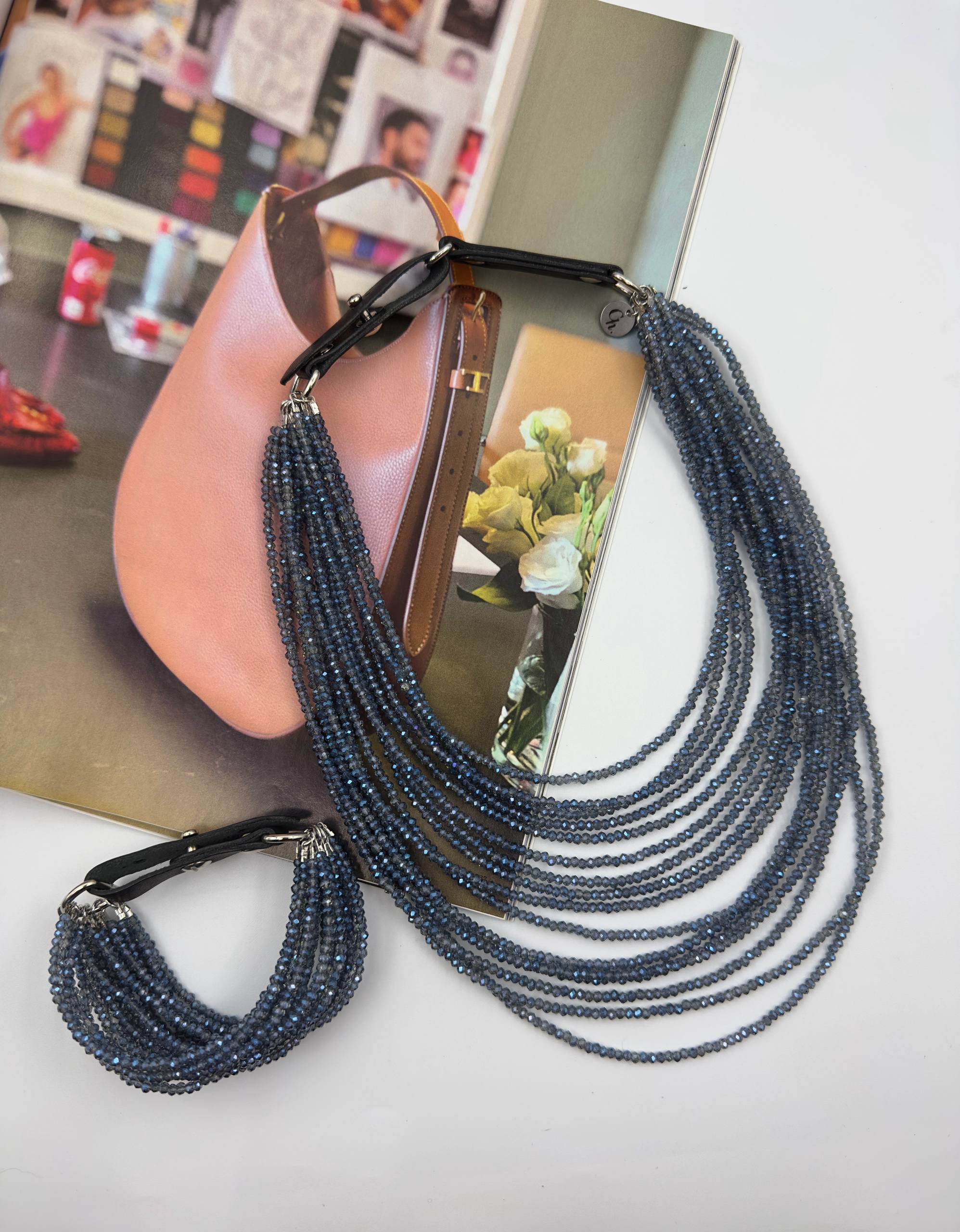 Колье "Венеция, оттенок Лондон блу, венец.стекло, натур.кожа.
