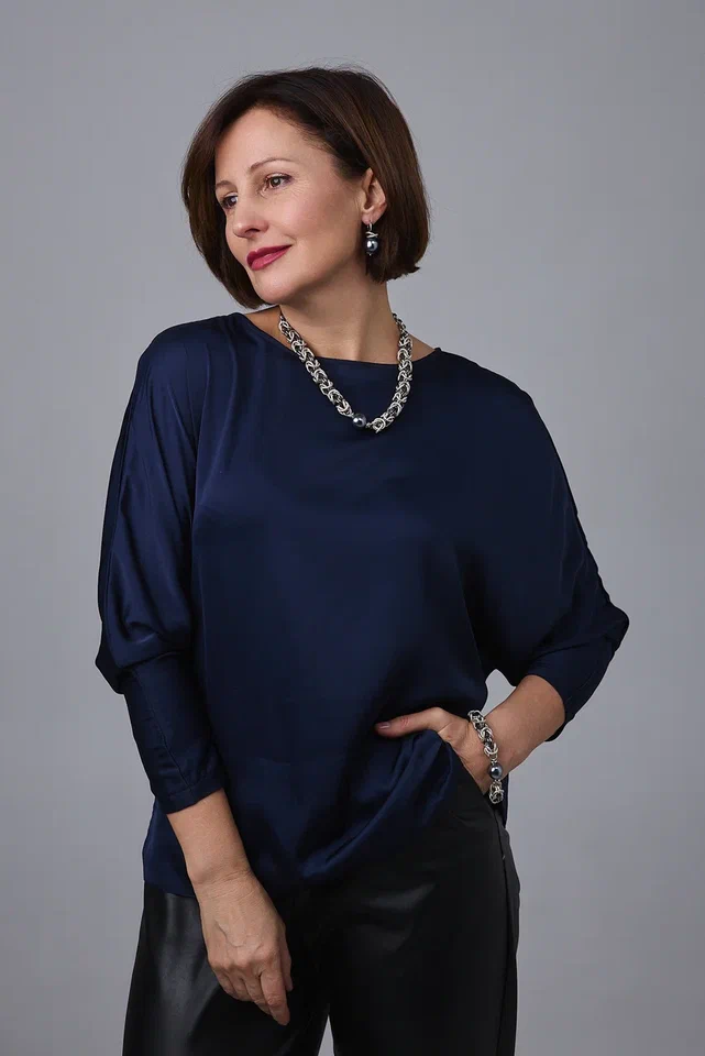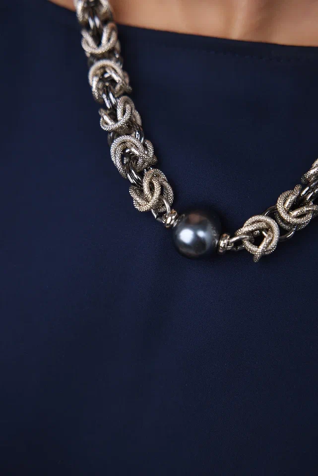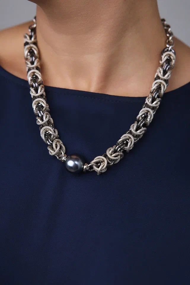 Колье Византия биколор:серебро и графит с темно-серым плоским жемчугом Майорка
