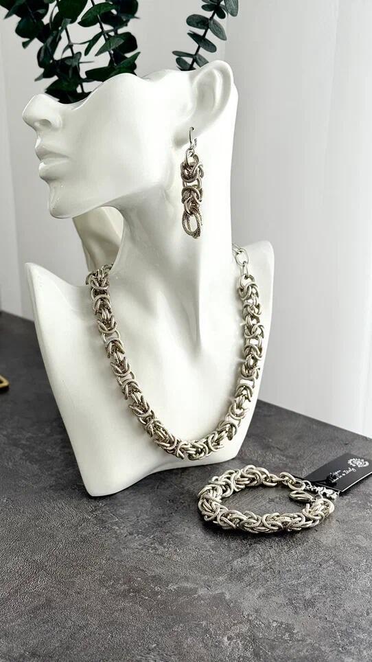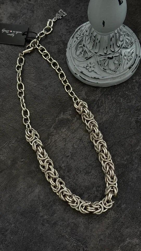 Колье, плетение "Византия", оттенок серебро. Длина: 41 - 55 см.