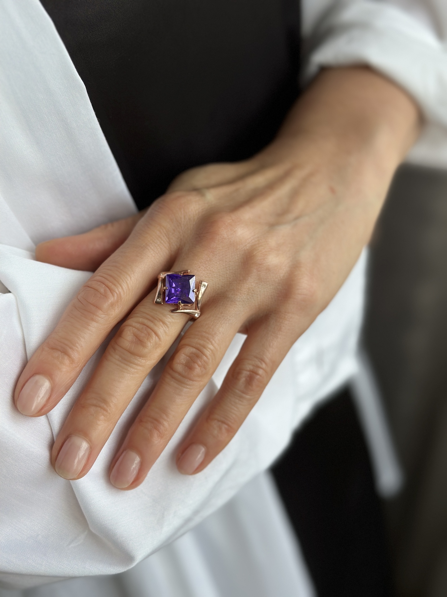 Кольцо из латуни с фианитом. Покрытие золото. Размер 18.