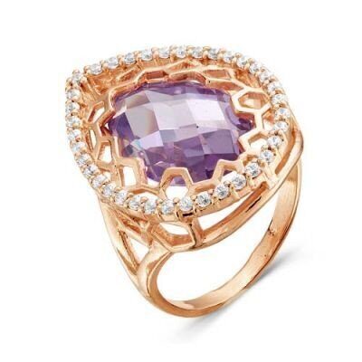 Кольцо из латуни с фианитами. Покрытие золото. Размер 17,5.