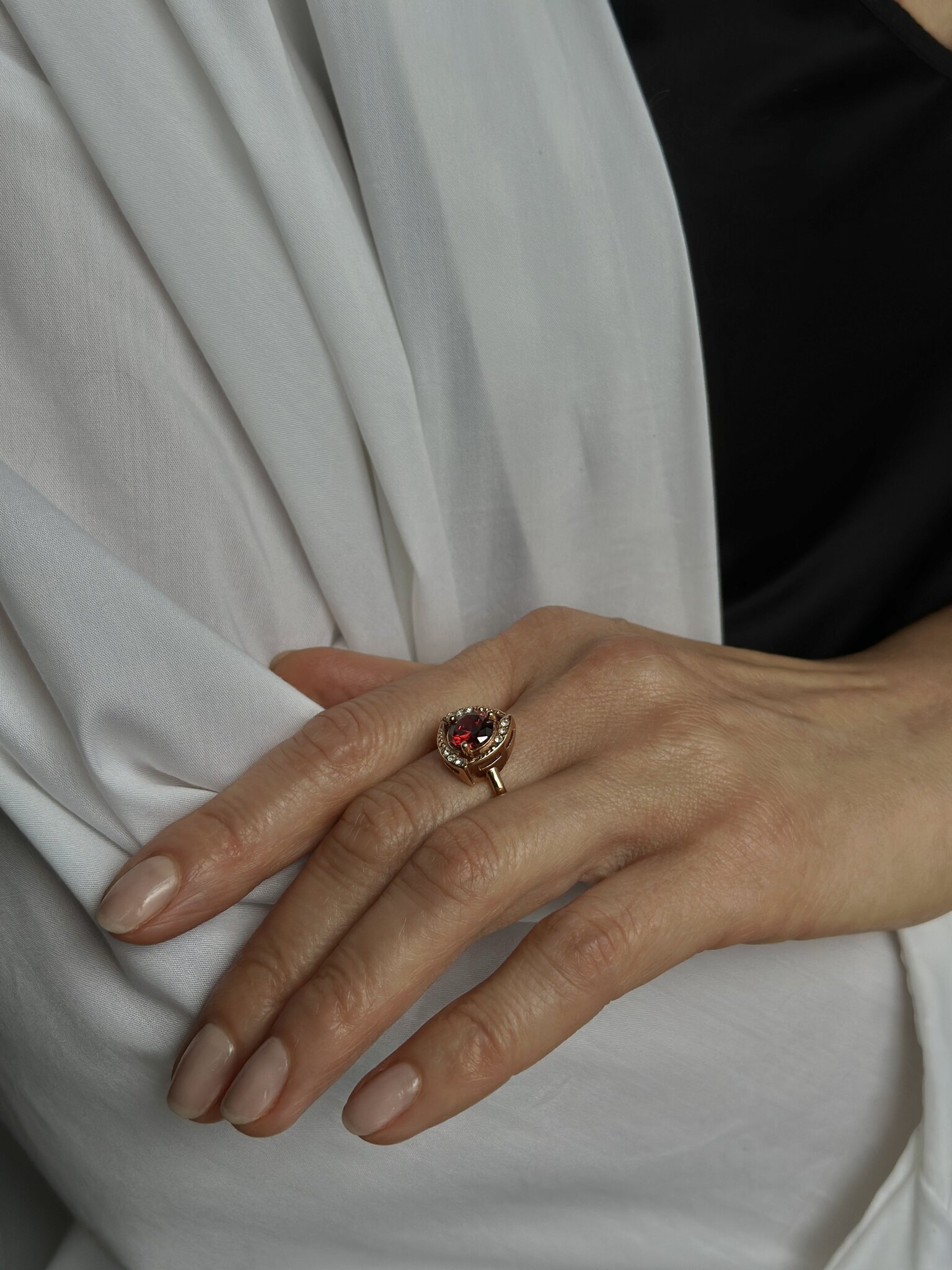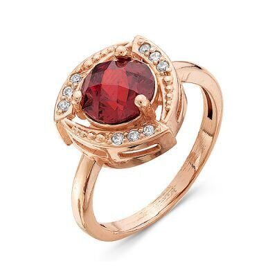 Кольцо из латуни с фианитом. Покрытие золото. Размер 18.