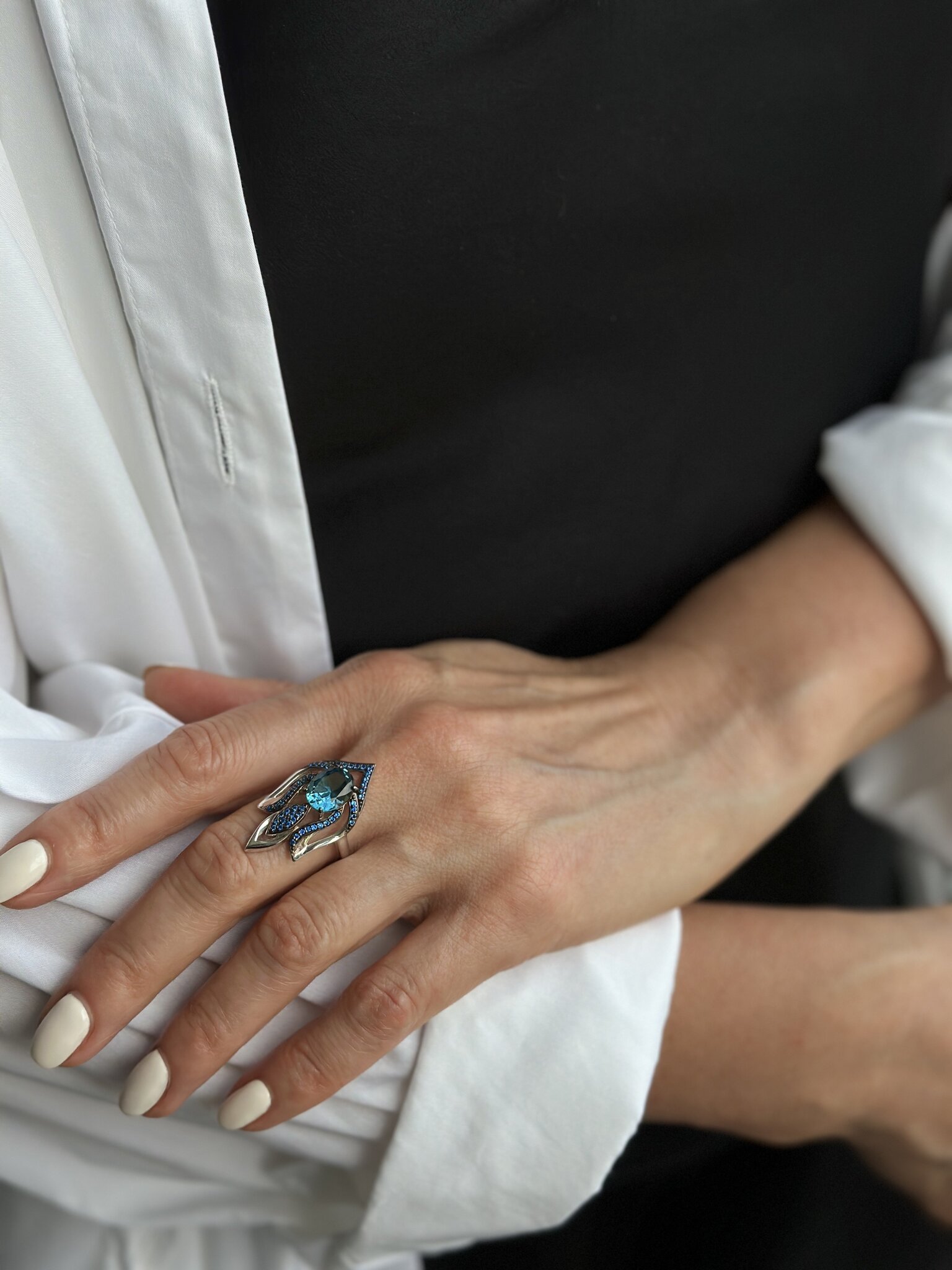 Кольцо из серебра 925 с наноситалом и фианитами. Размер 17,5.