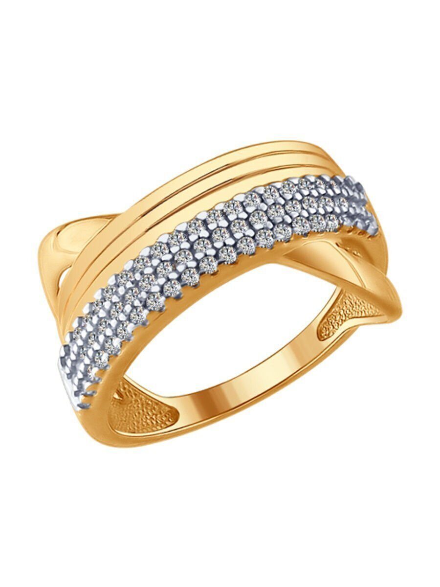 Кольцо из серебра 925 с фианитами. Золочение. Размер 18.