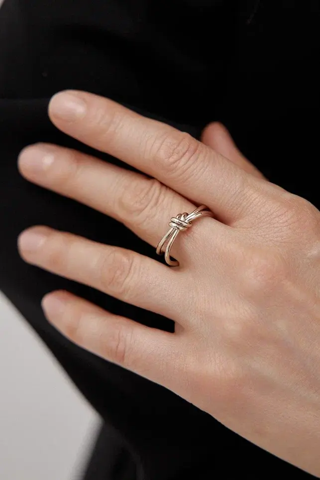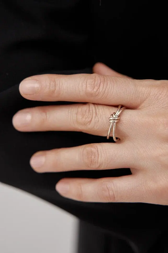 Кольцо безразмерное "узелки", оттенок "теплое" серебро