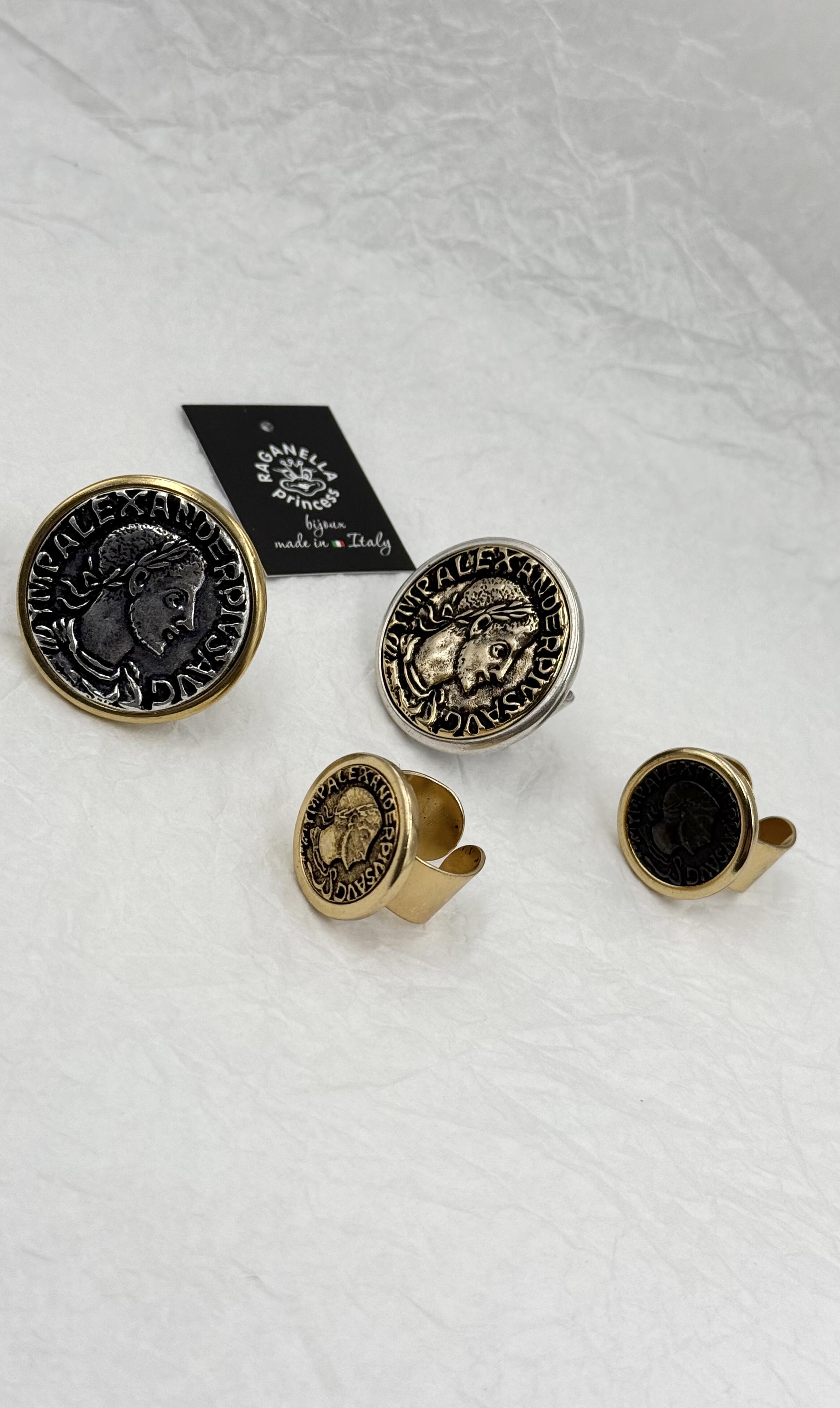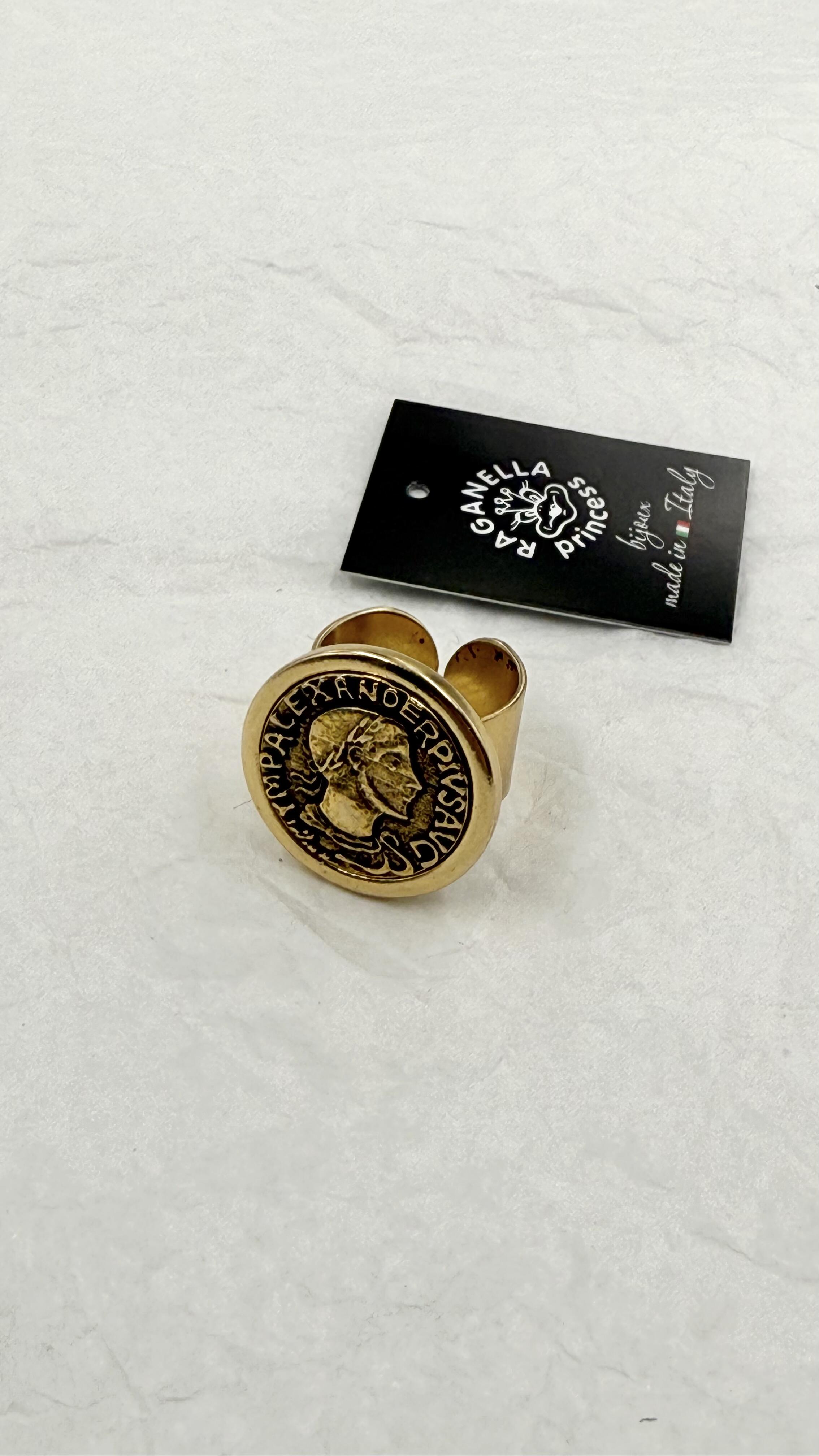 Кольцо монета с профилем римского императора Марка Аврелия Севе́р Алекса́ндра, оттенок золото. Кольцо разъёмное. Диаметр 2,3 см.