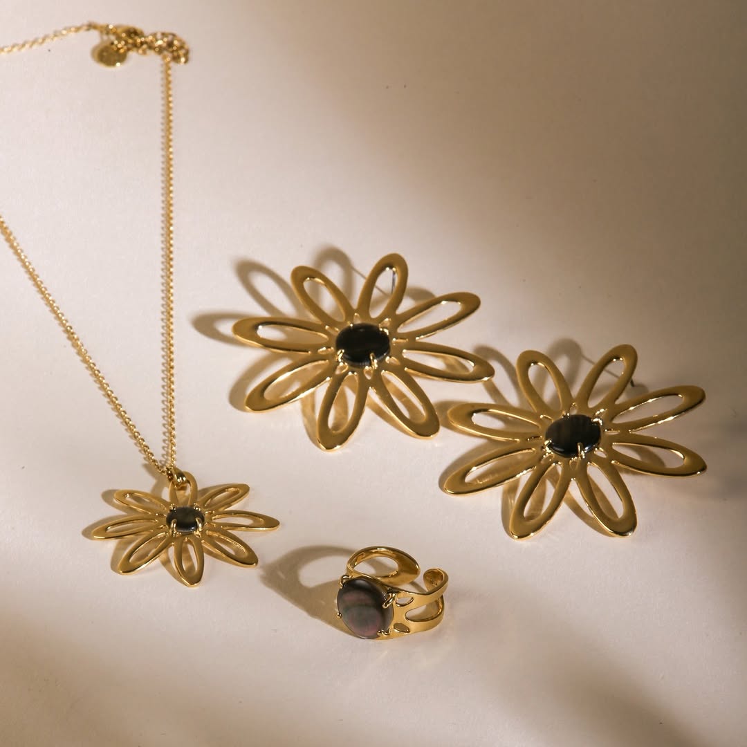 Кольцо ORI TAO, Bloom, разъемное, в форме цветка с черным перламутром, OT25.2-19-40511 (золотистый).