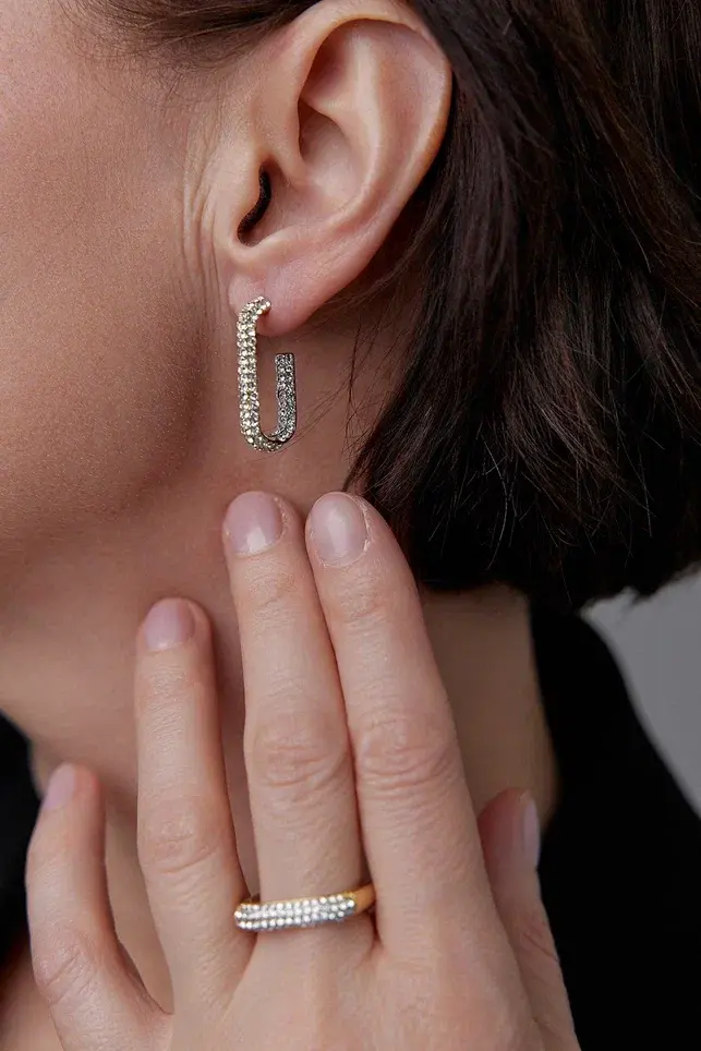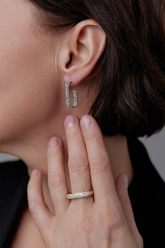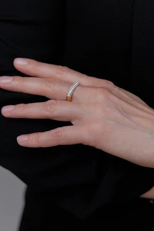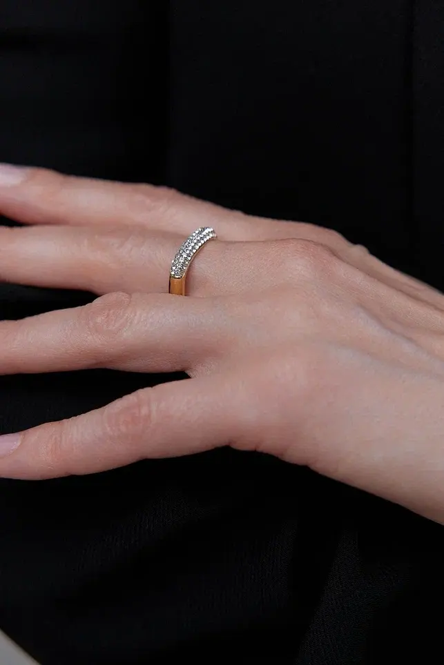 Кольцо прямоугольное с маленькими кристаллами, оттенок золото. Разъемное.