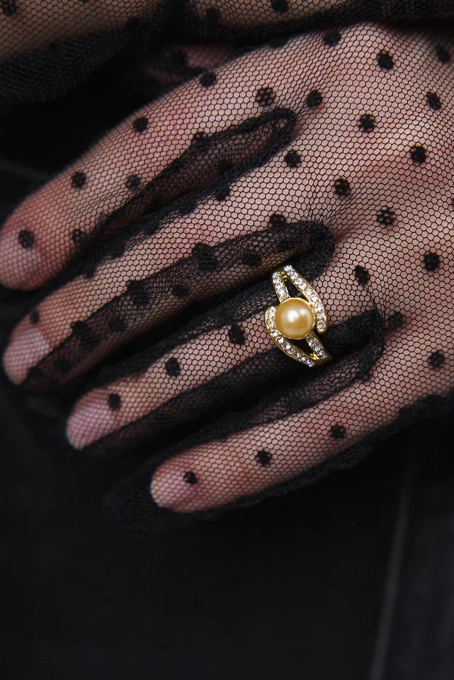 Кольцо с фианитами и золотой жемчужиной, оттенок золото.
