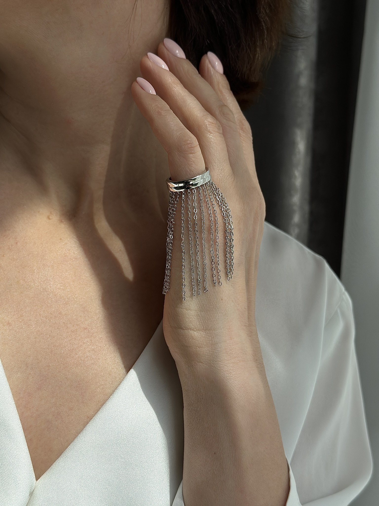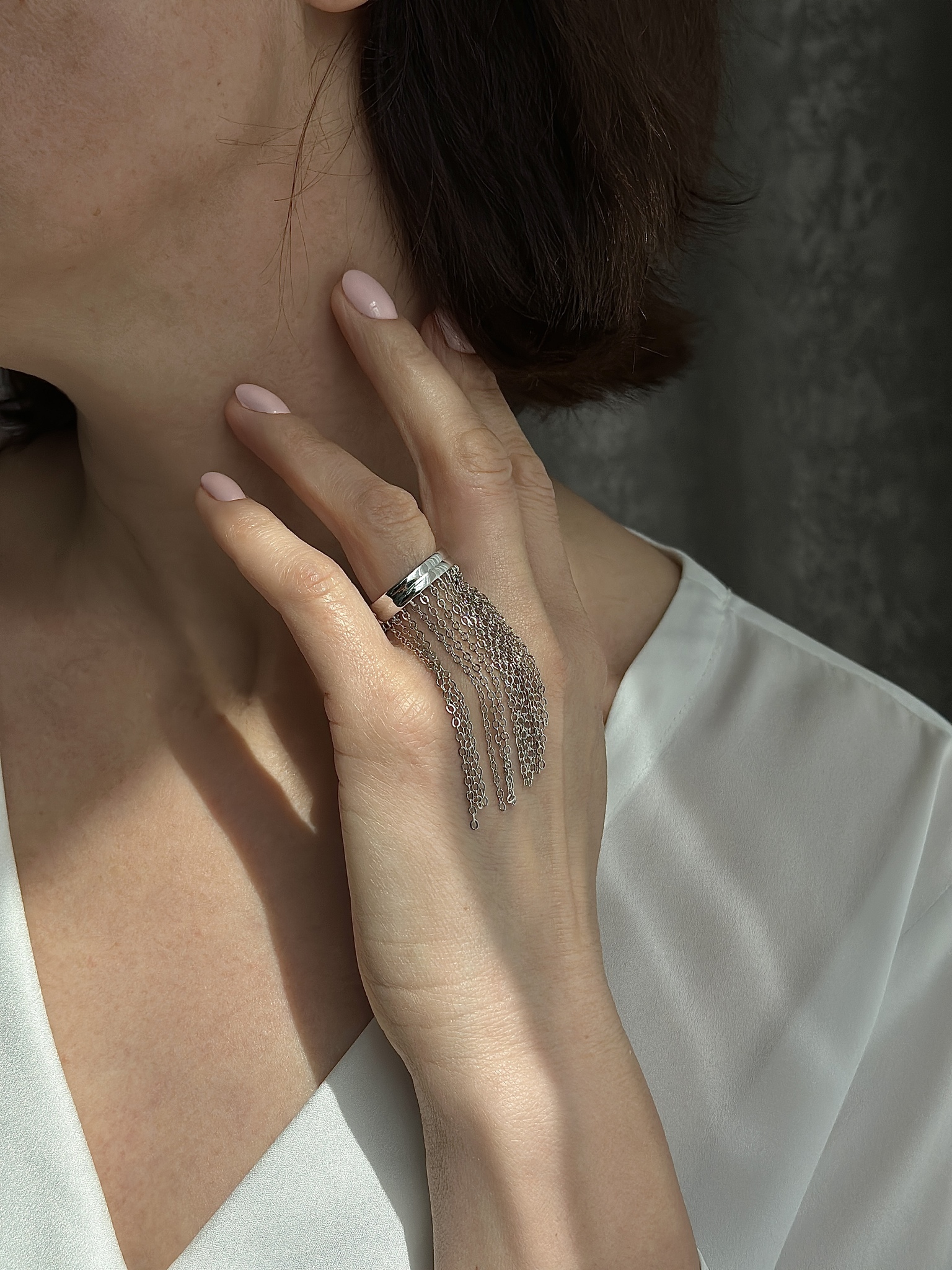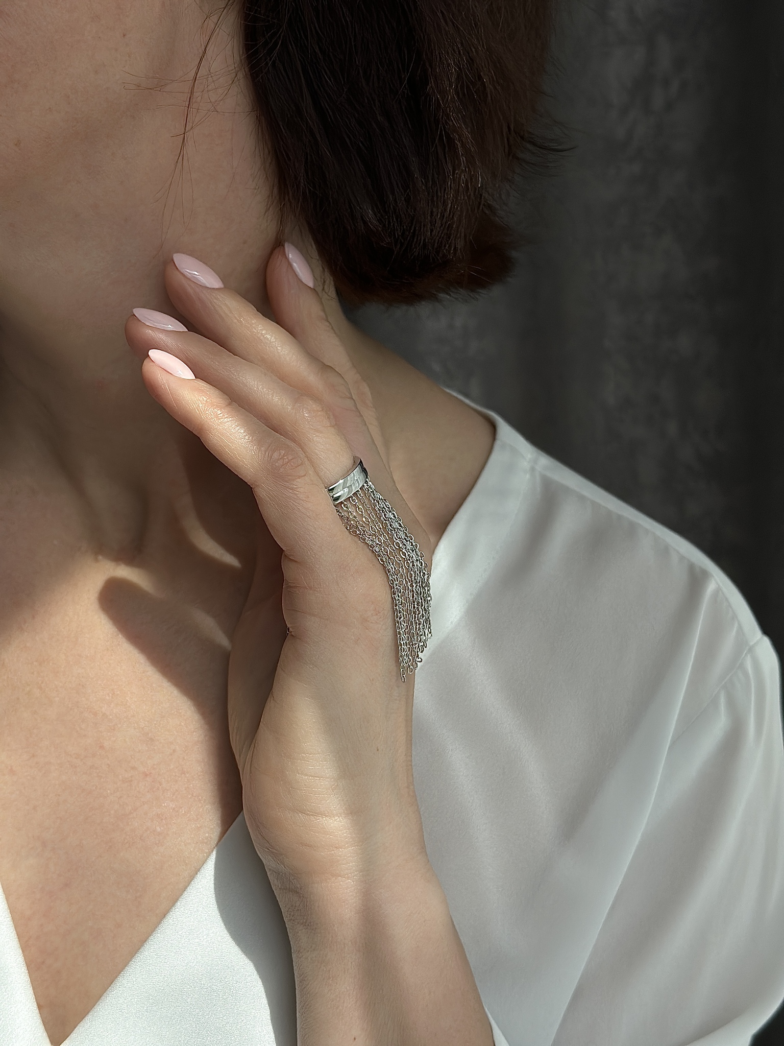 Кольцо сталь с тонкими длинными цепочками, оттенок серебро.