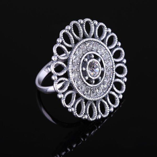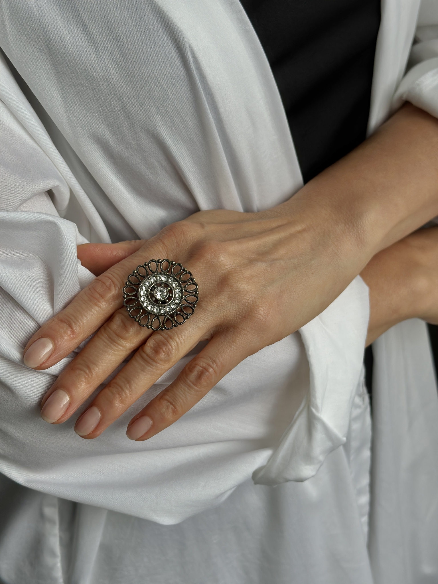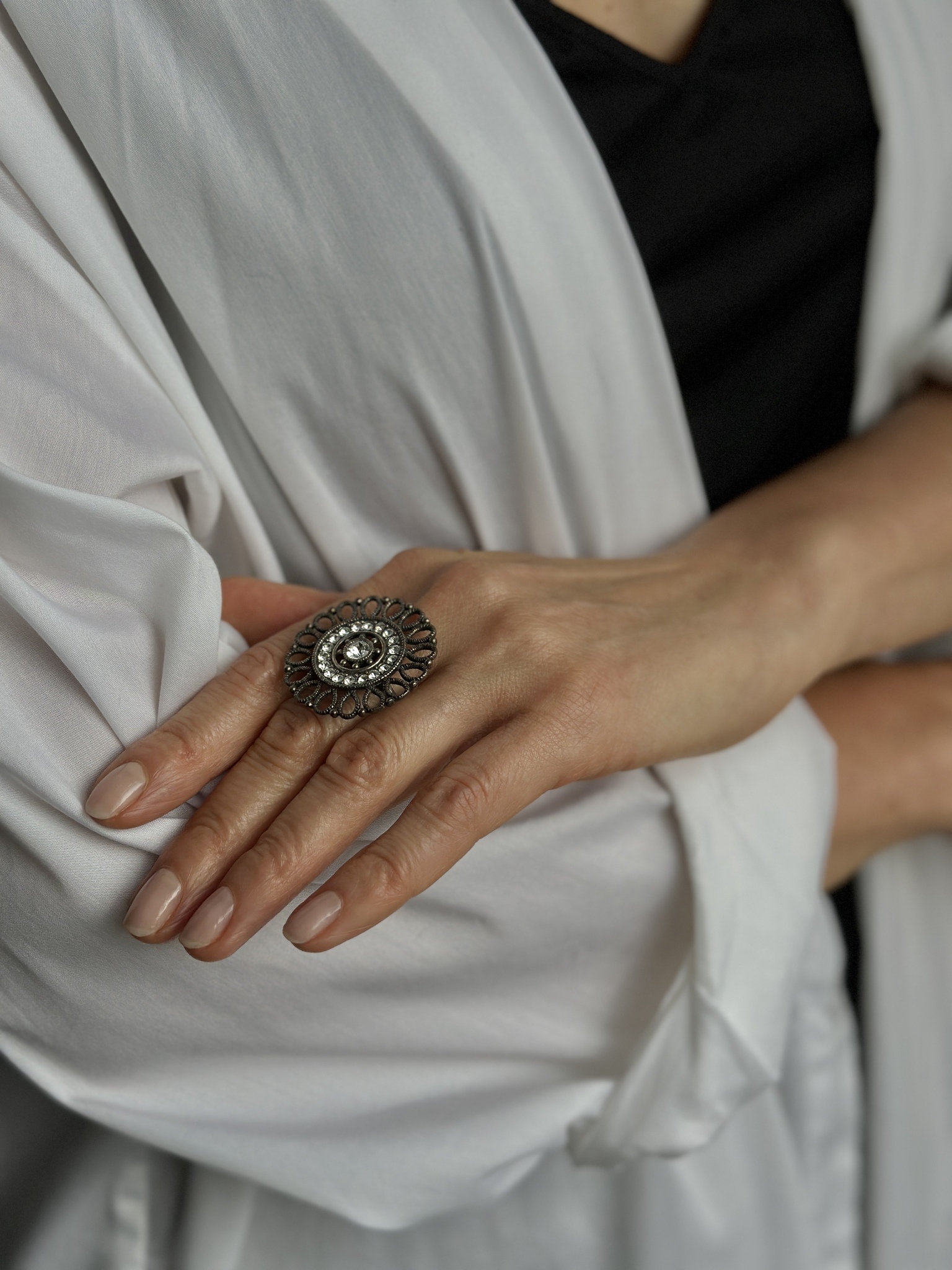 Кольцо из бижутерного сплава с кристаллами Сваровски. Покрытие черненое серебро. Размеры 15 и 17.