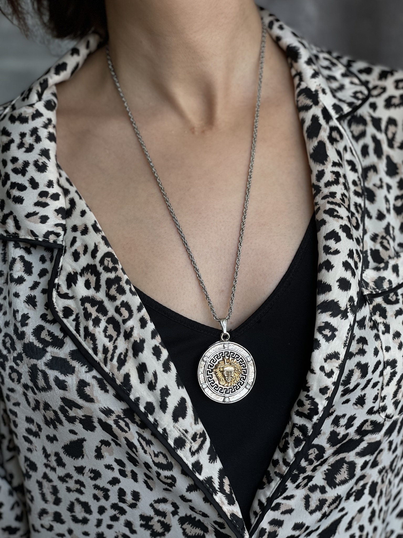 Кулон круглый медуза биколор в духе Версаче на тонкой серебряной цепочке, Италия