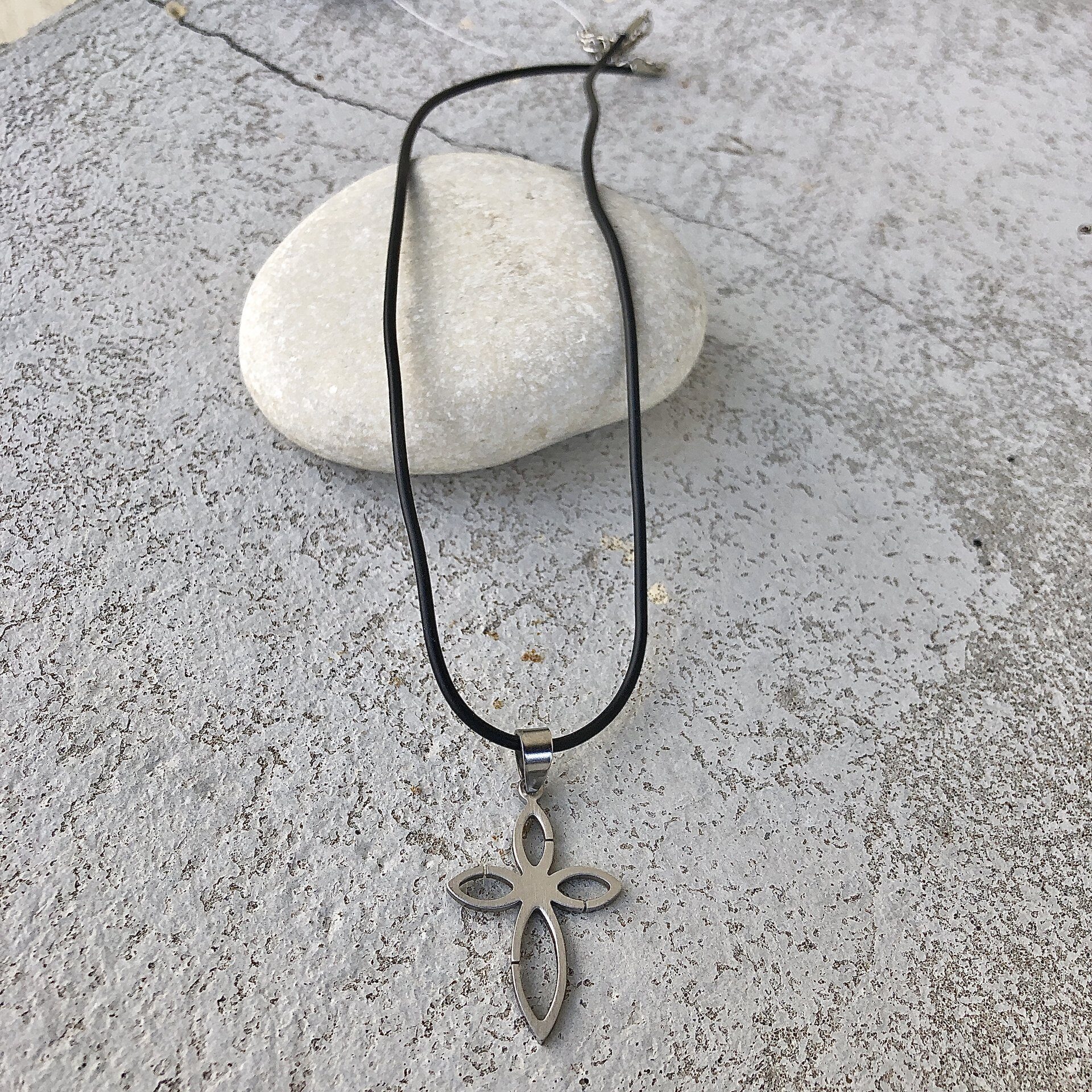 Кулон из бижутерного сплава на каучуковом шнурке.