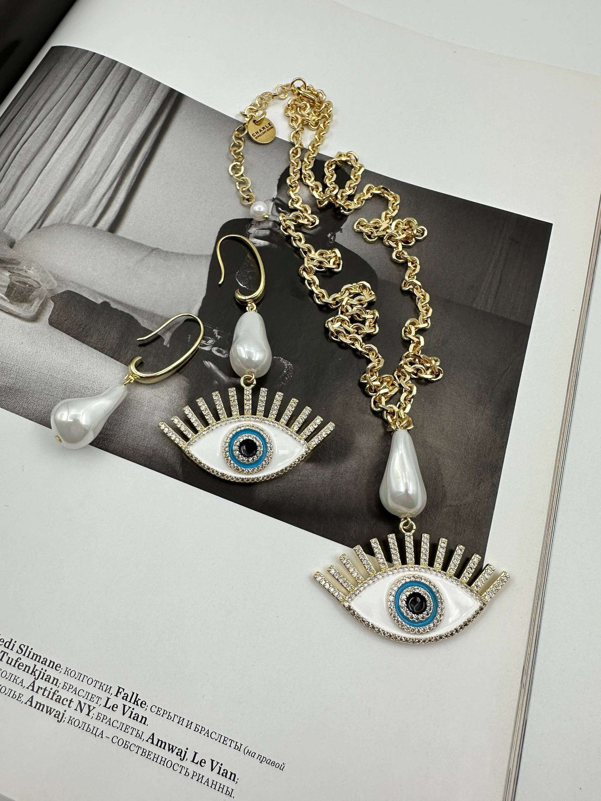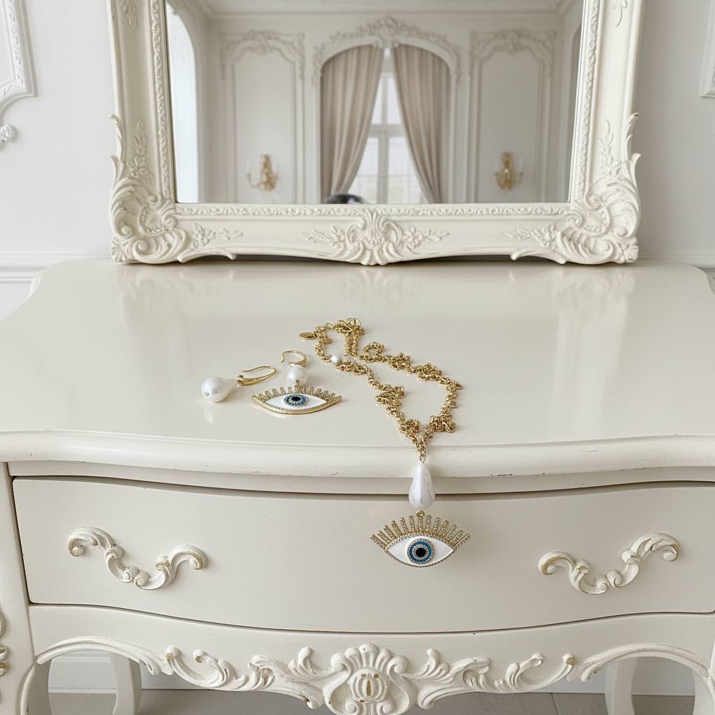 Кулон на цепочке "Аура", эмаль, цирконы, барочный жемчуг, оттенок золото