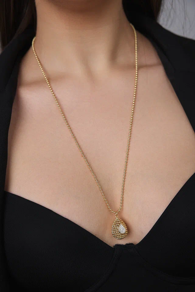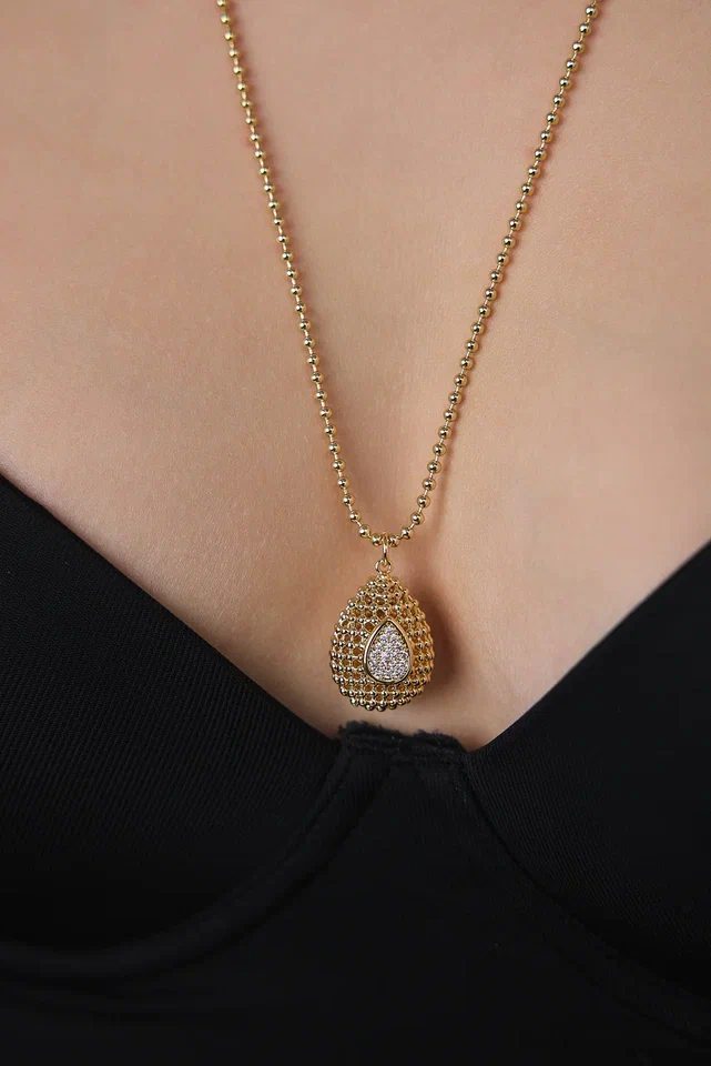 Кулон на цепочке "Милора" круглый с цирконами, оттенок золото