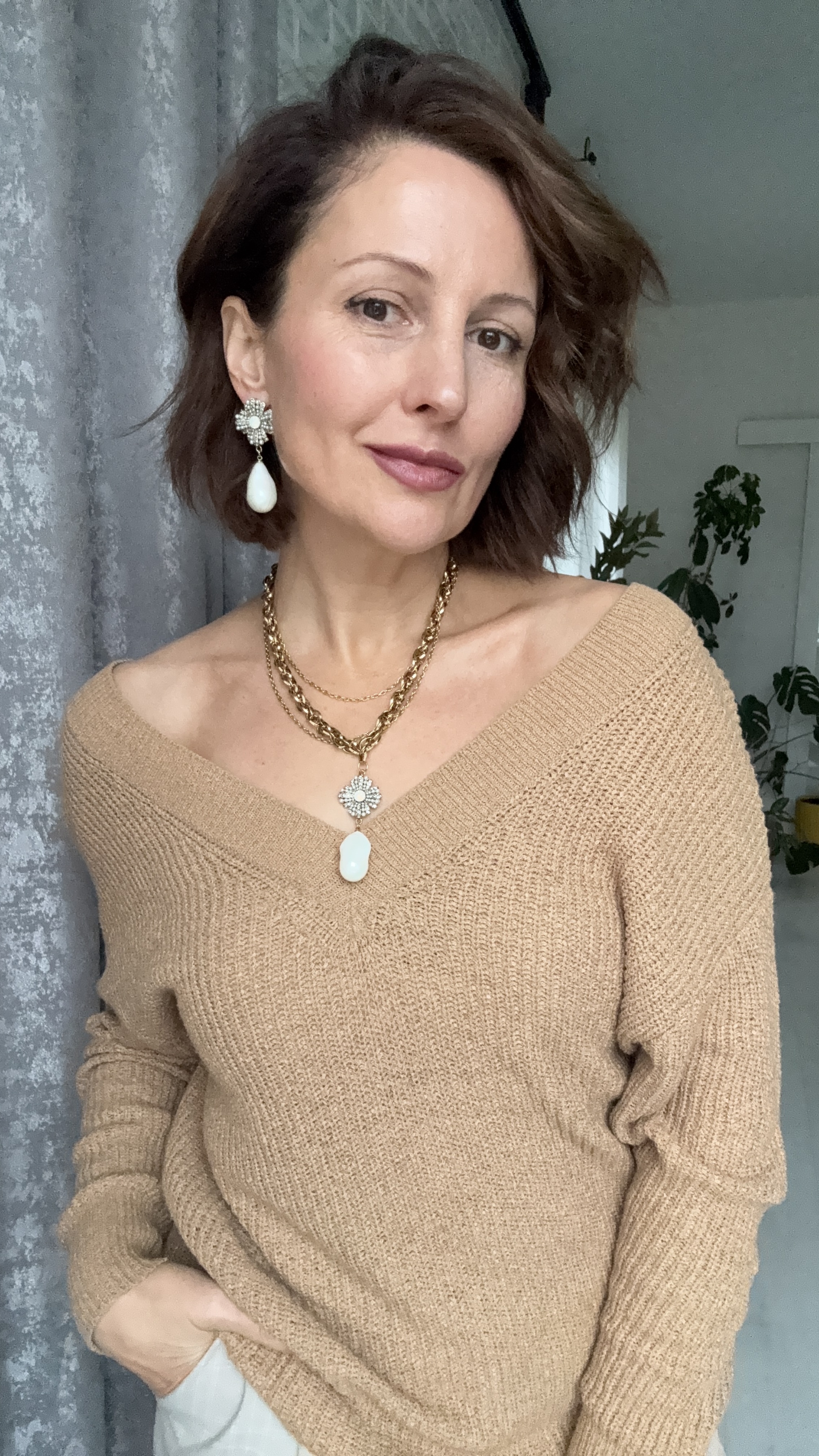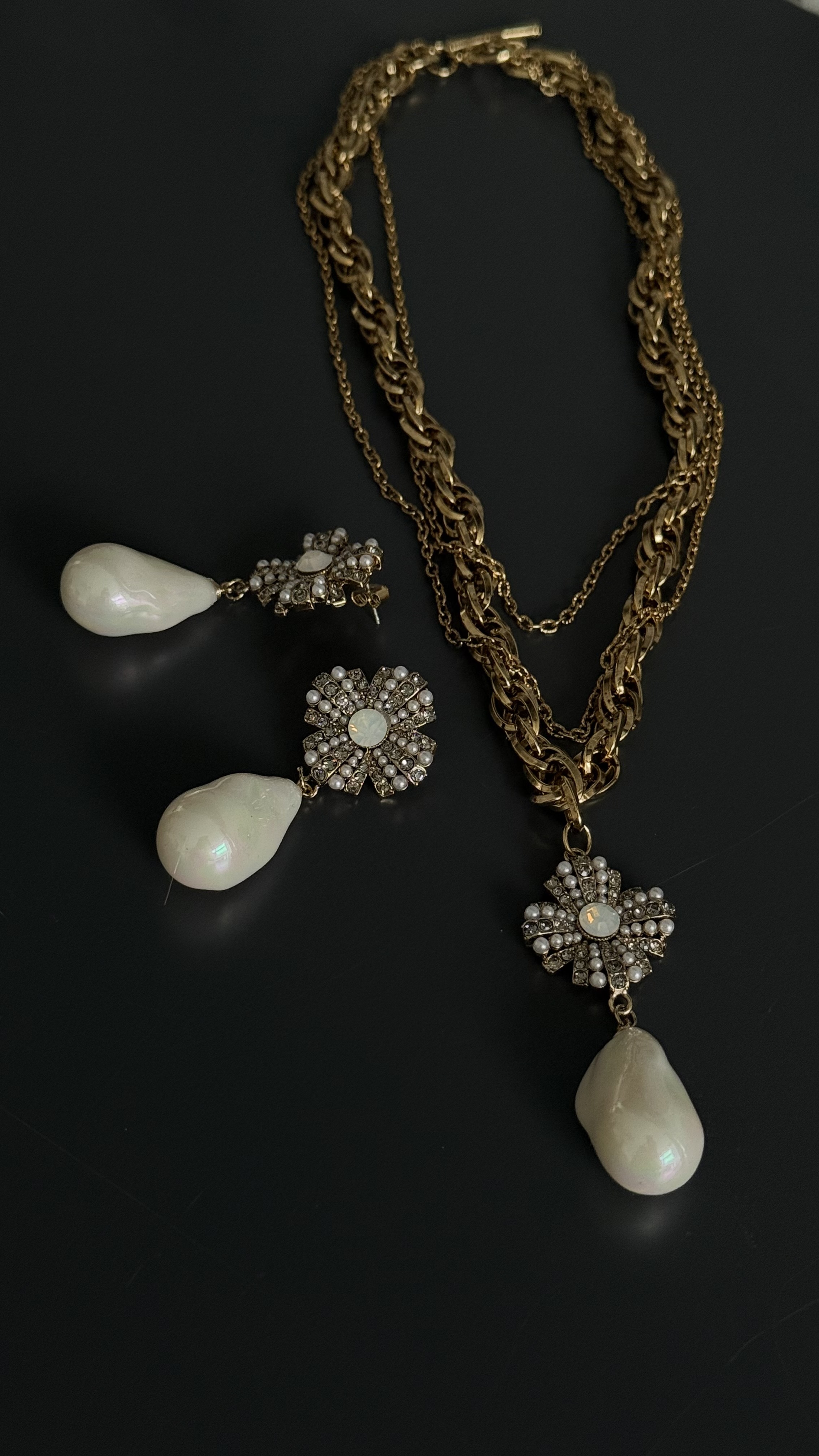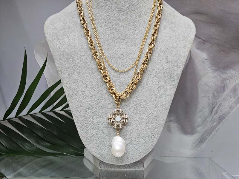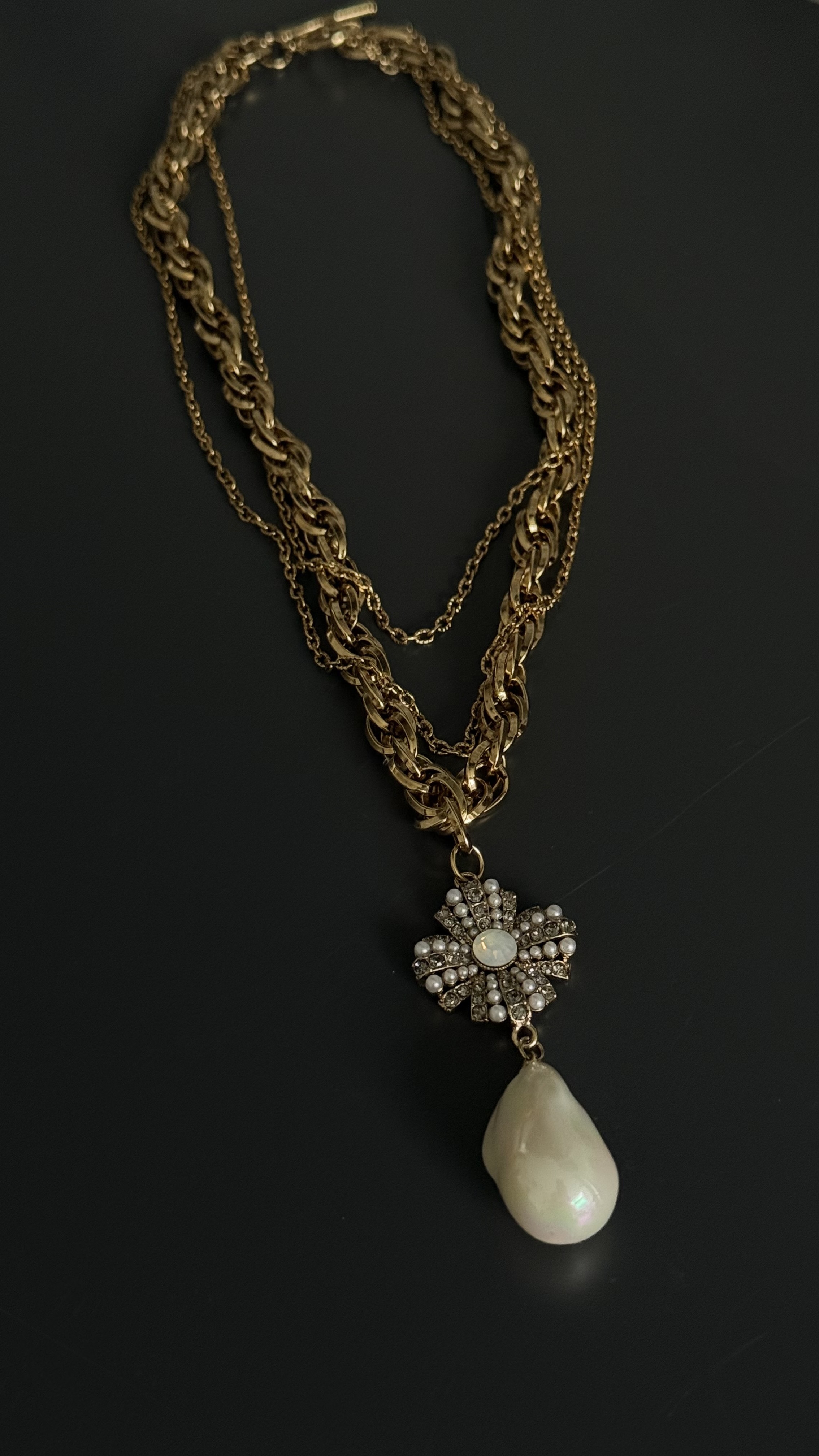 Кулон орден с каплевидной барочной жемчужиной на тройной цепочке, оттенок золото антик.