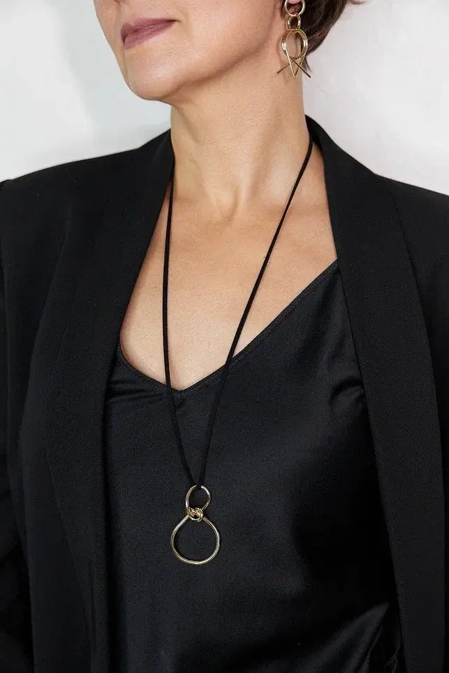 Кулон золотая восьмерка на длинном замшевом шнурке