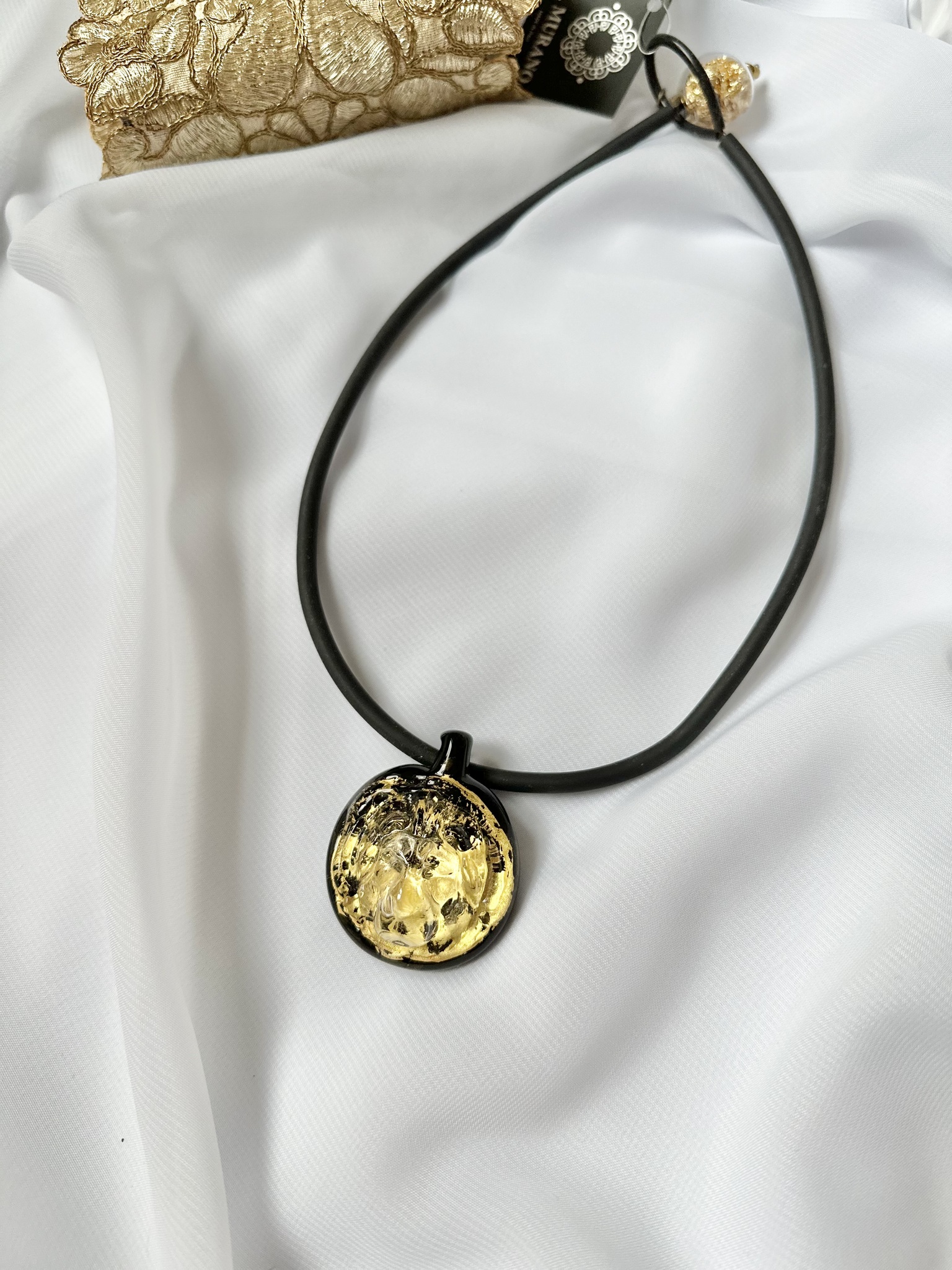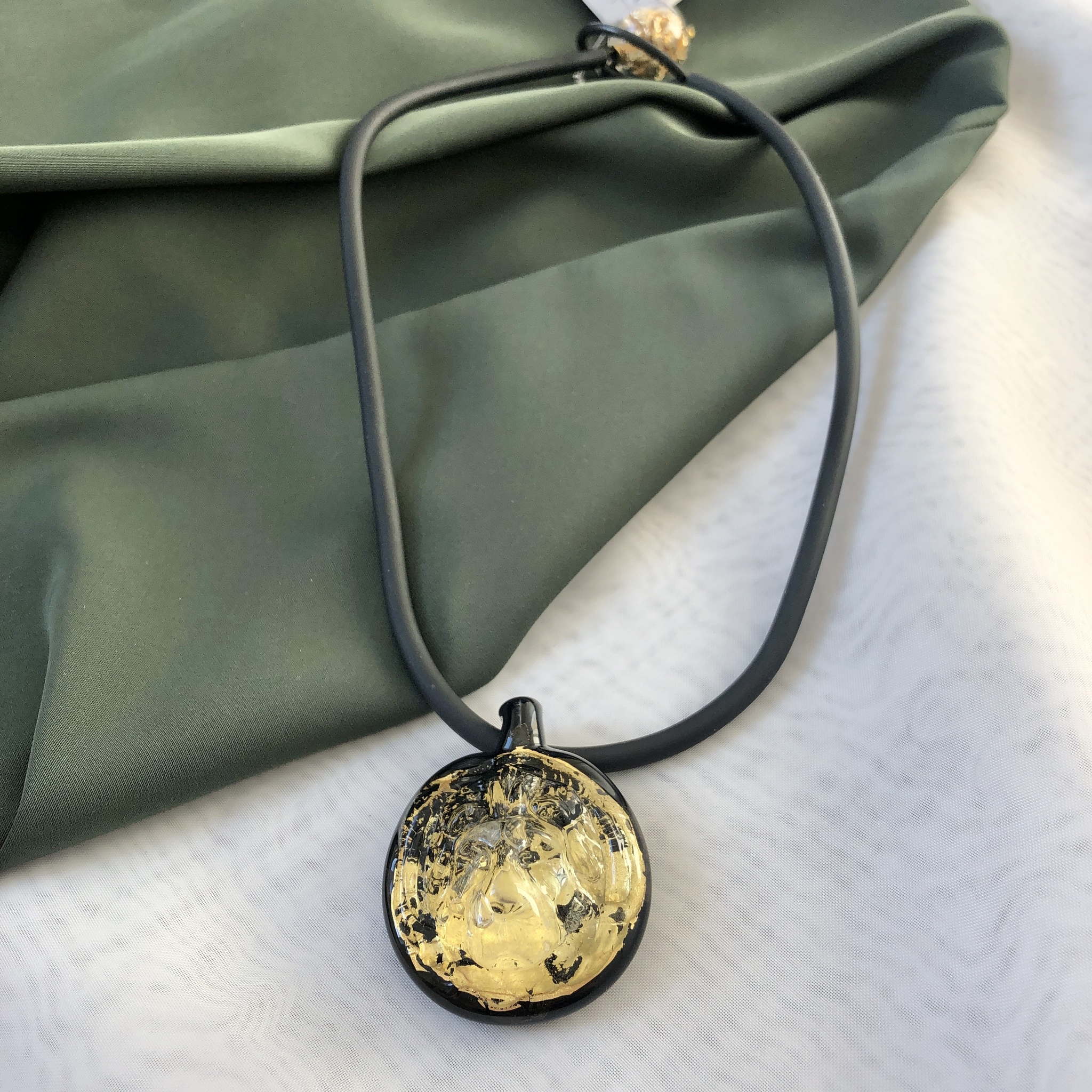 Кулон из муранского стекла на каучуке.