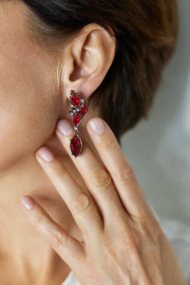 Серьги на английском замке с кристаллами Сваровски. Ювелирный сплав, медное покрытие. Длина 5 см.