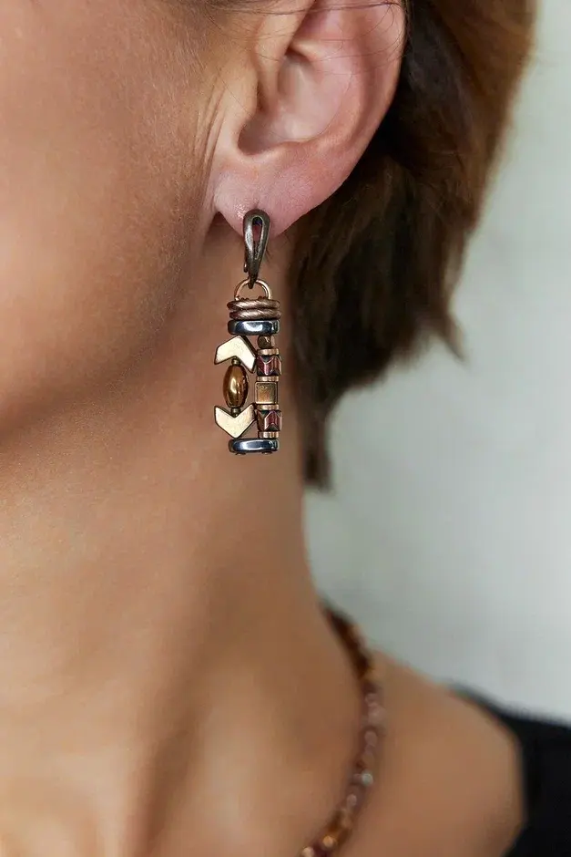 Серьги на английском замке из гематита. Длина 4,5 см.