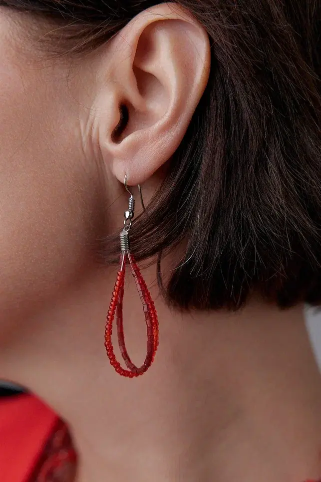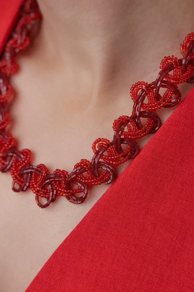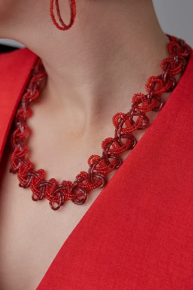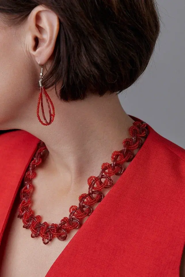 Красно-бордовое колье и серьги со стеклярусом. Длина 40 см. Фурнитура из гипоаллергенного бижутерного сплава. Оттенок серебро.