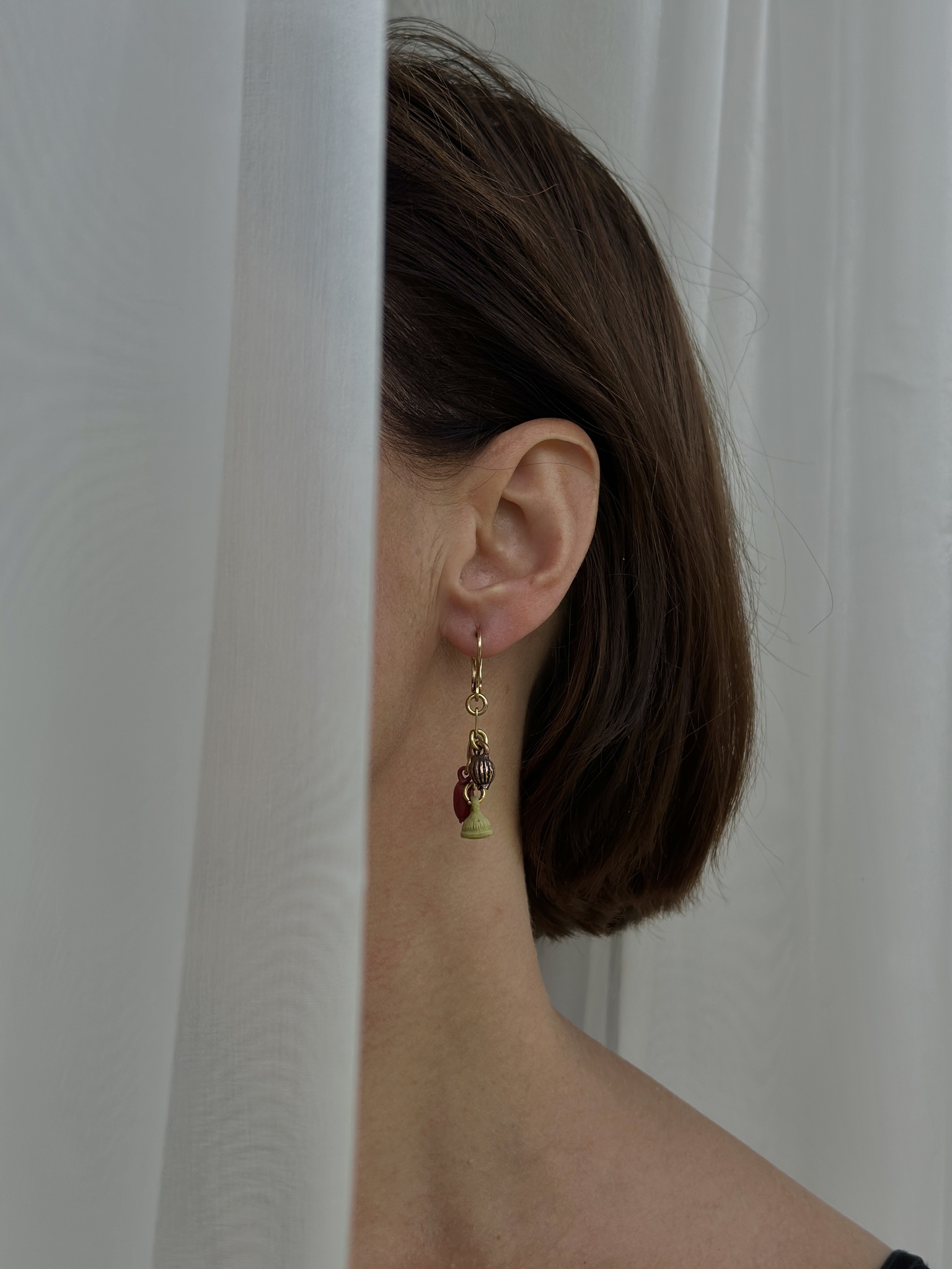 Серьги на английском замке с полимером. Оттенки золото, медь, бардо и светло-зеленый.