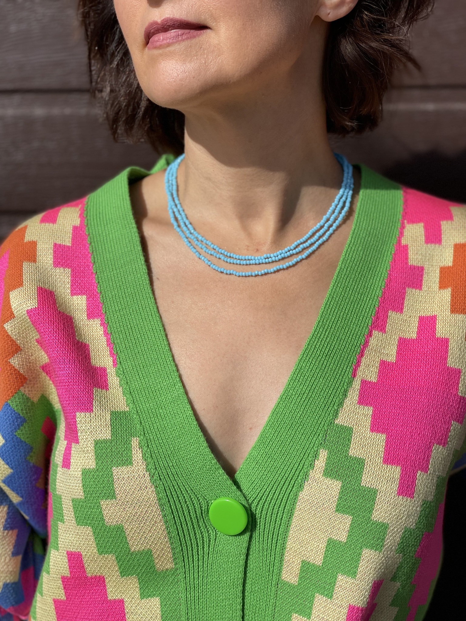 Нить-трансформер из венецианского бисера, цвет голубой. Застежка магнит. Можно носить как шейное украшение и как браслет.