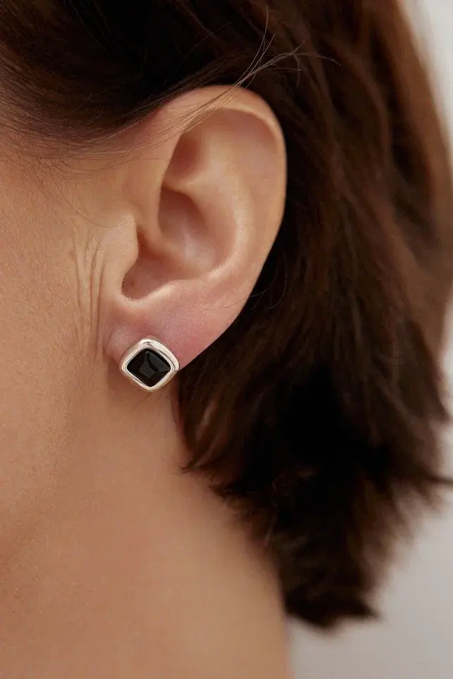 Пусеты от испанского бренда с муранским стеклом. Размер 1 х 1 см. Сплав ZAMAK, покрытие серебром 15 микрон.