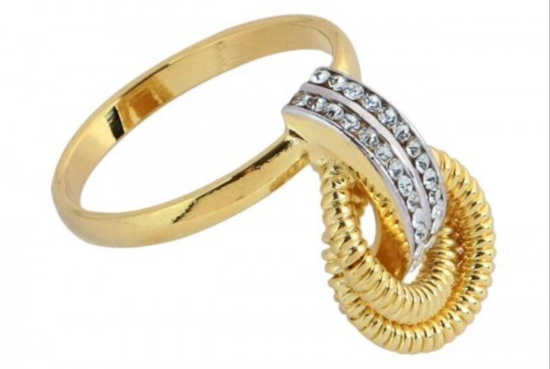 Кольцо из ювелирного сплава с кристаллами Сваровски. Покрытие золото. Размер 18.