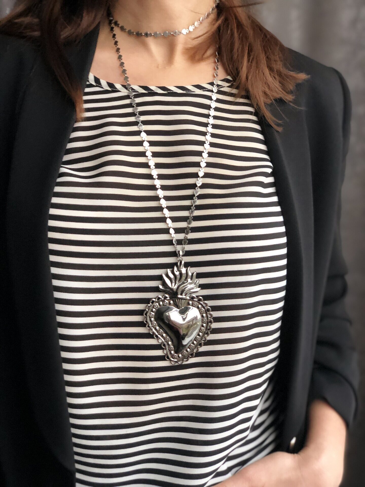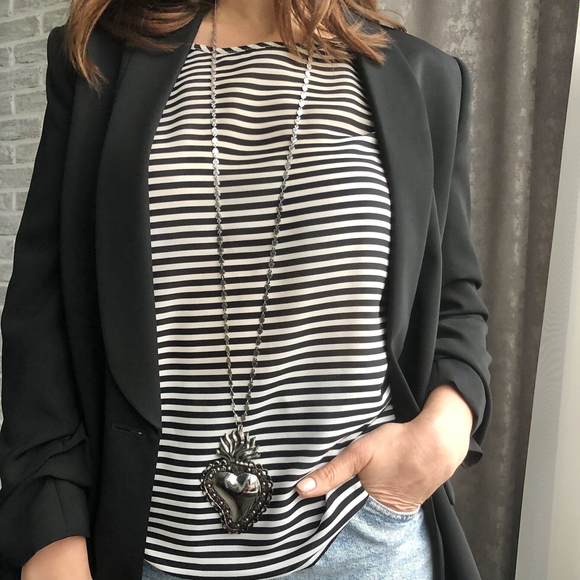 Сердце большое графитовое на серебряной цепочке из сердечек, Италия