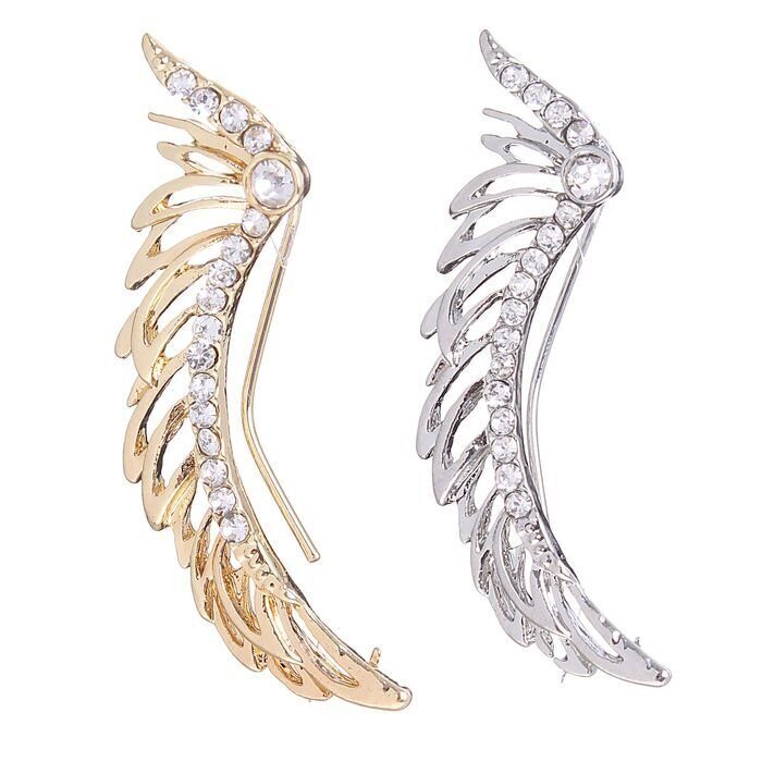 Серьга "Каффа" крылышко. Гипоаллергенный бижутерный сплав. Оттенок серебро.