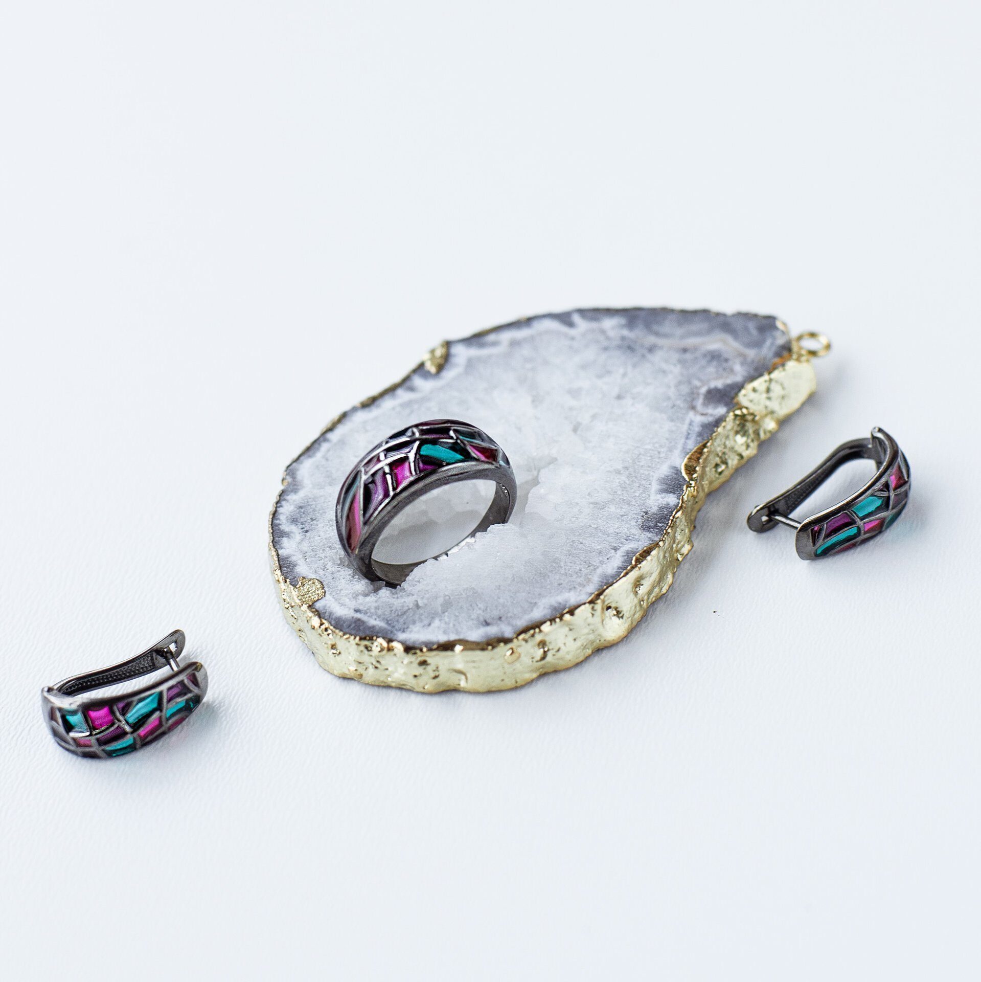 Серьги из серебра 925. Витражная эмаль. Покрытие клиар. Английский замок.