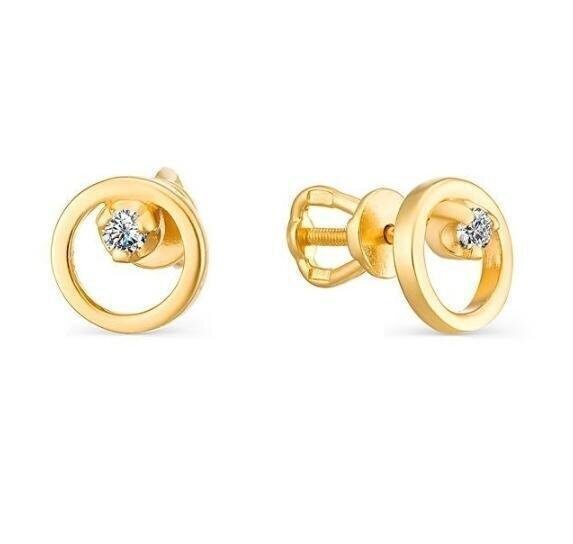 Серьги пусеты из серебра 925 с фианитами. Золочение.