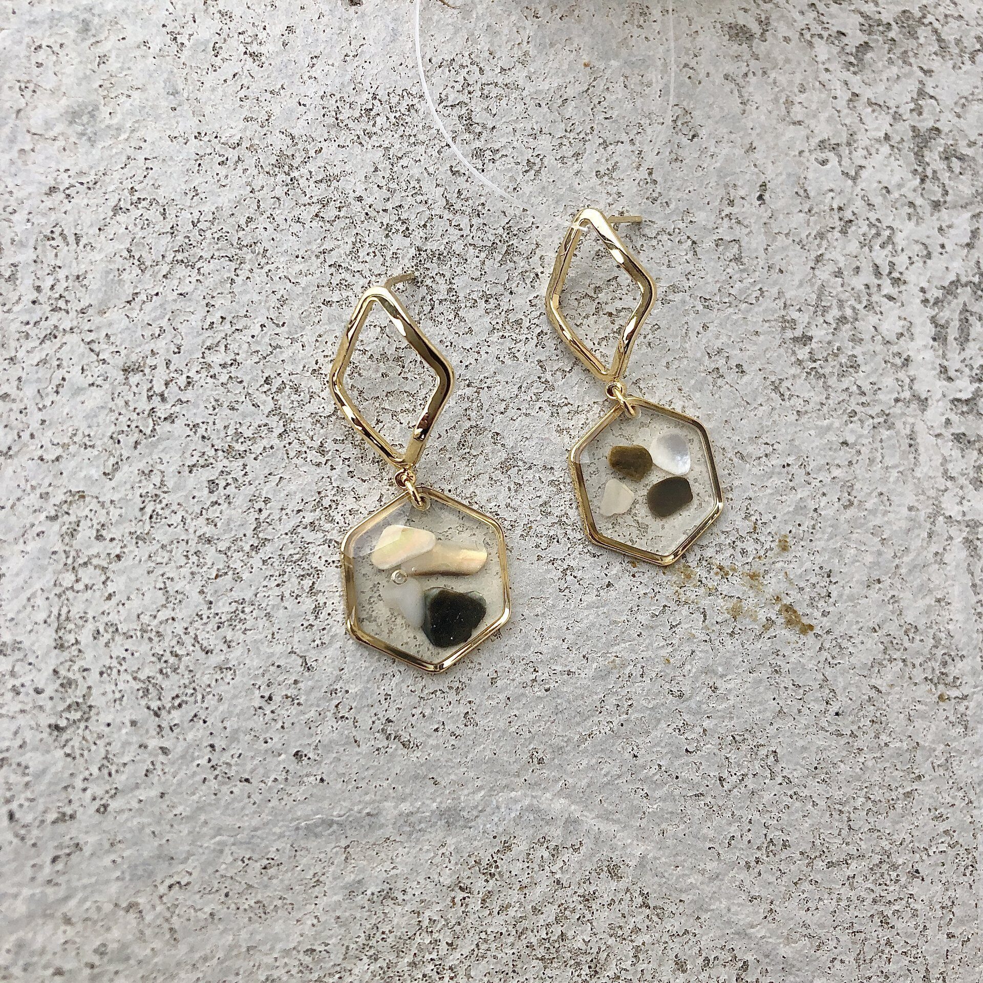 Серьги из бижутерного сплава с перламутровыми пластинами. Пусеты.
